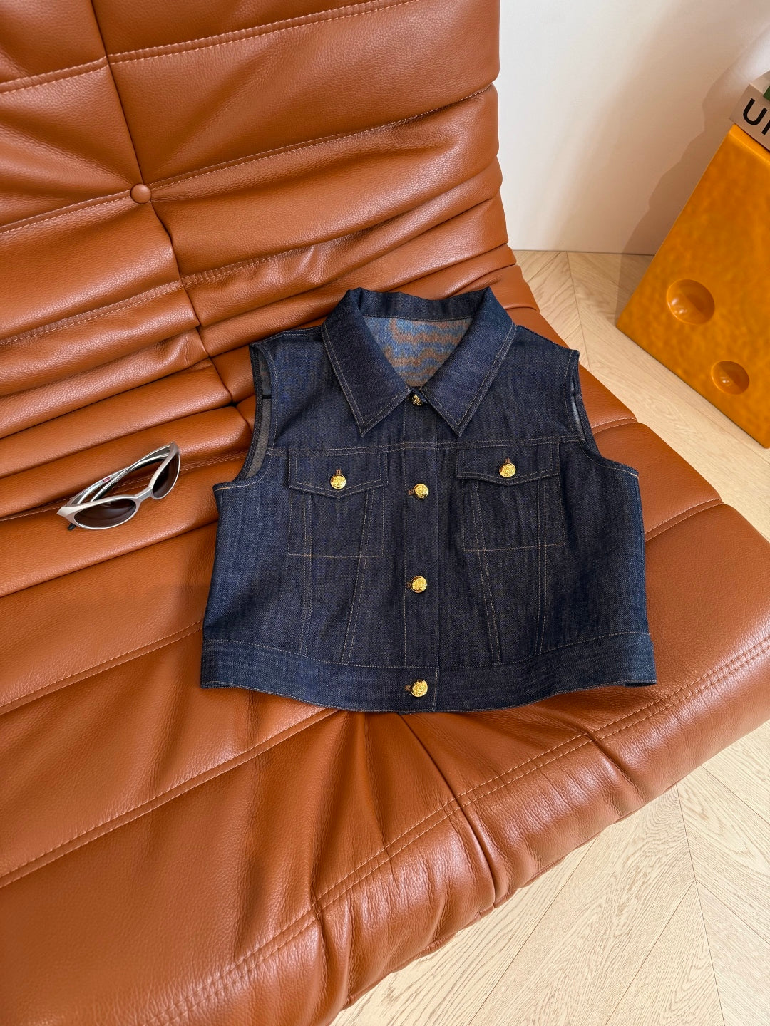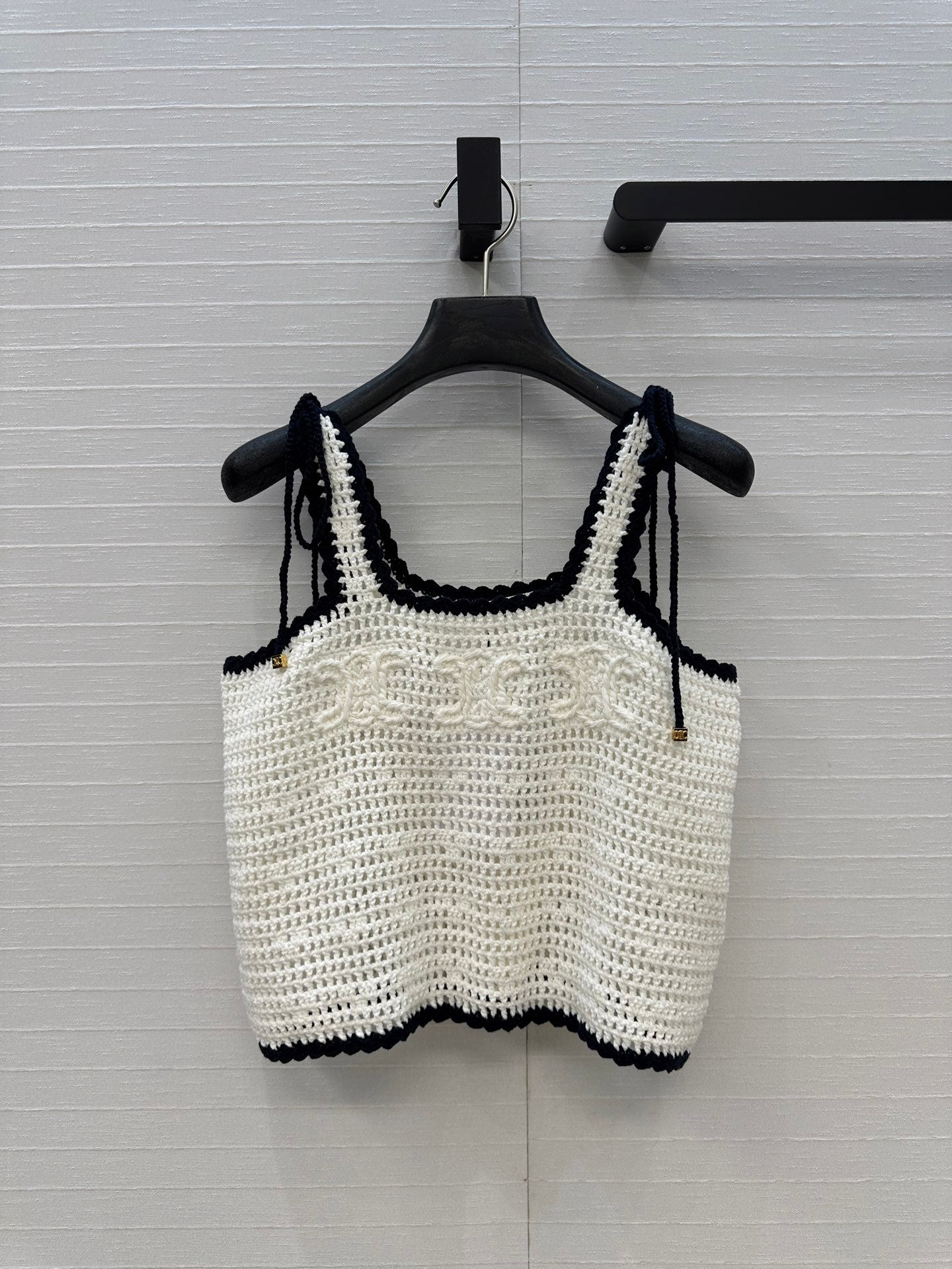 Celine 25 Embroidered Logo Striped Small Vest Navy Blue mix White Cotton