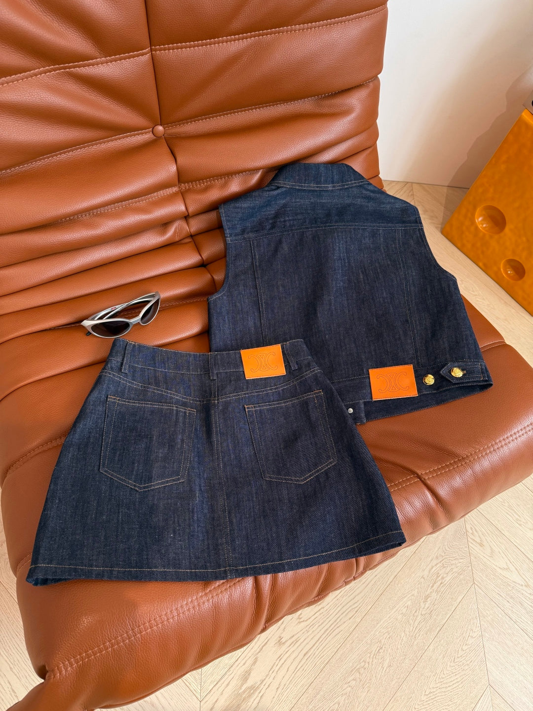 Celine Logo Embroided Denim Short Light Blue Cotton