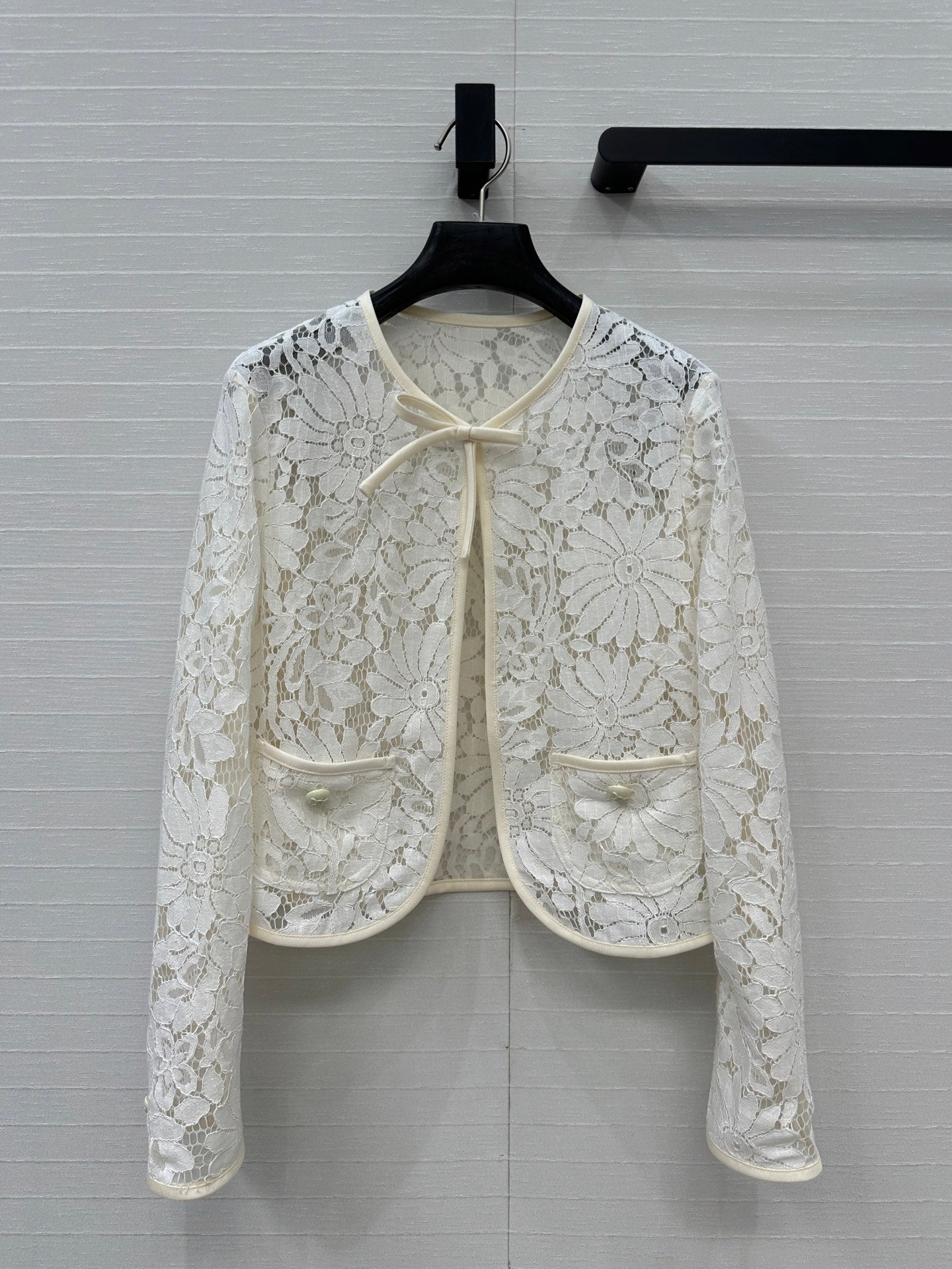 Celine 25 Lace Embroidered Cardigan Jacket White polyester