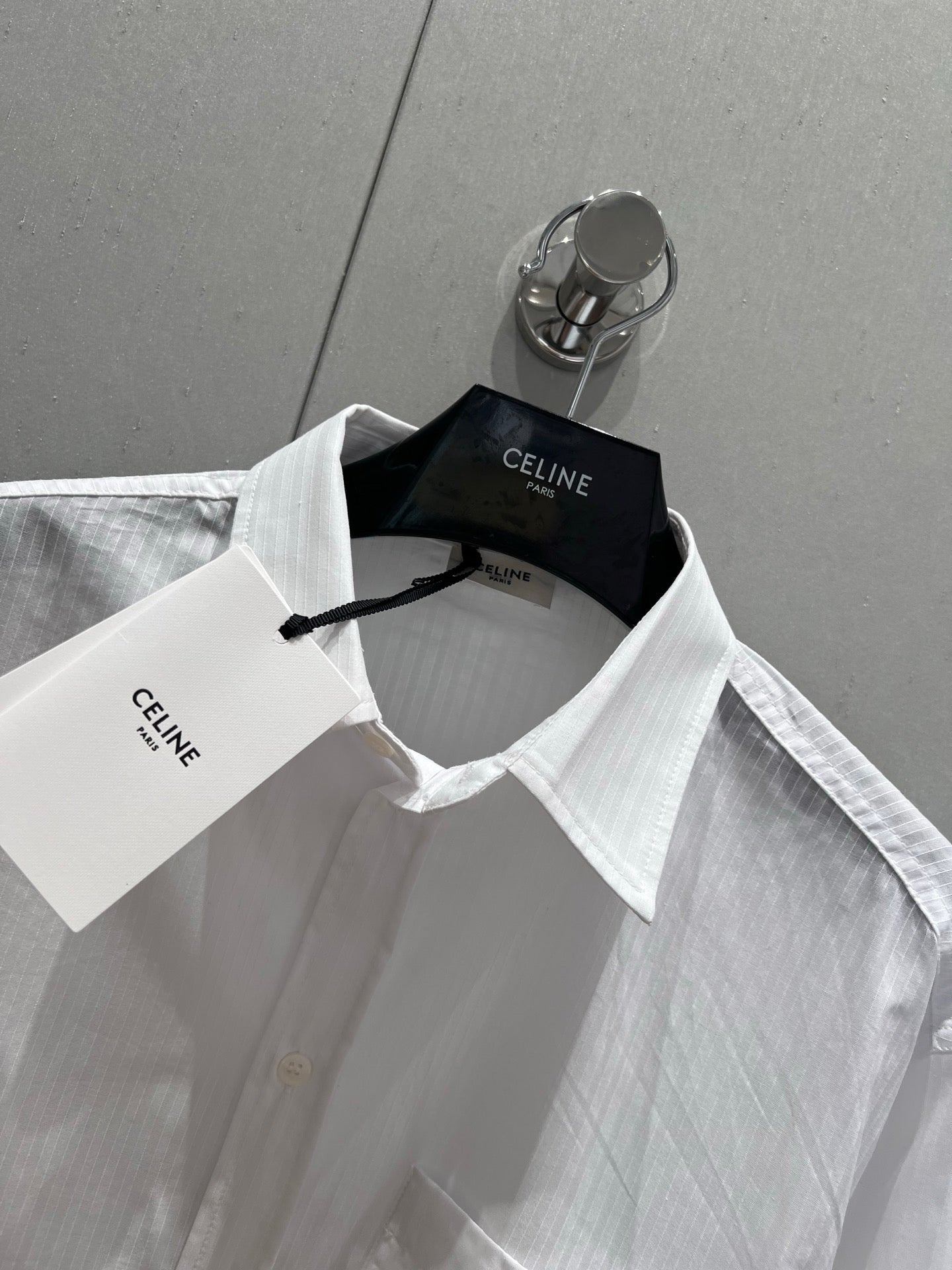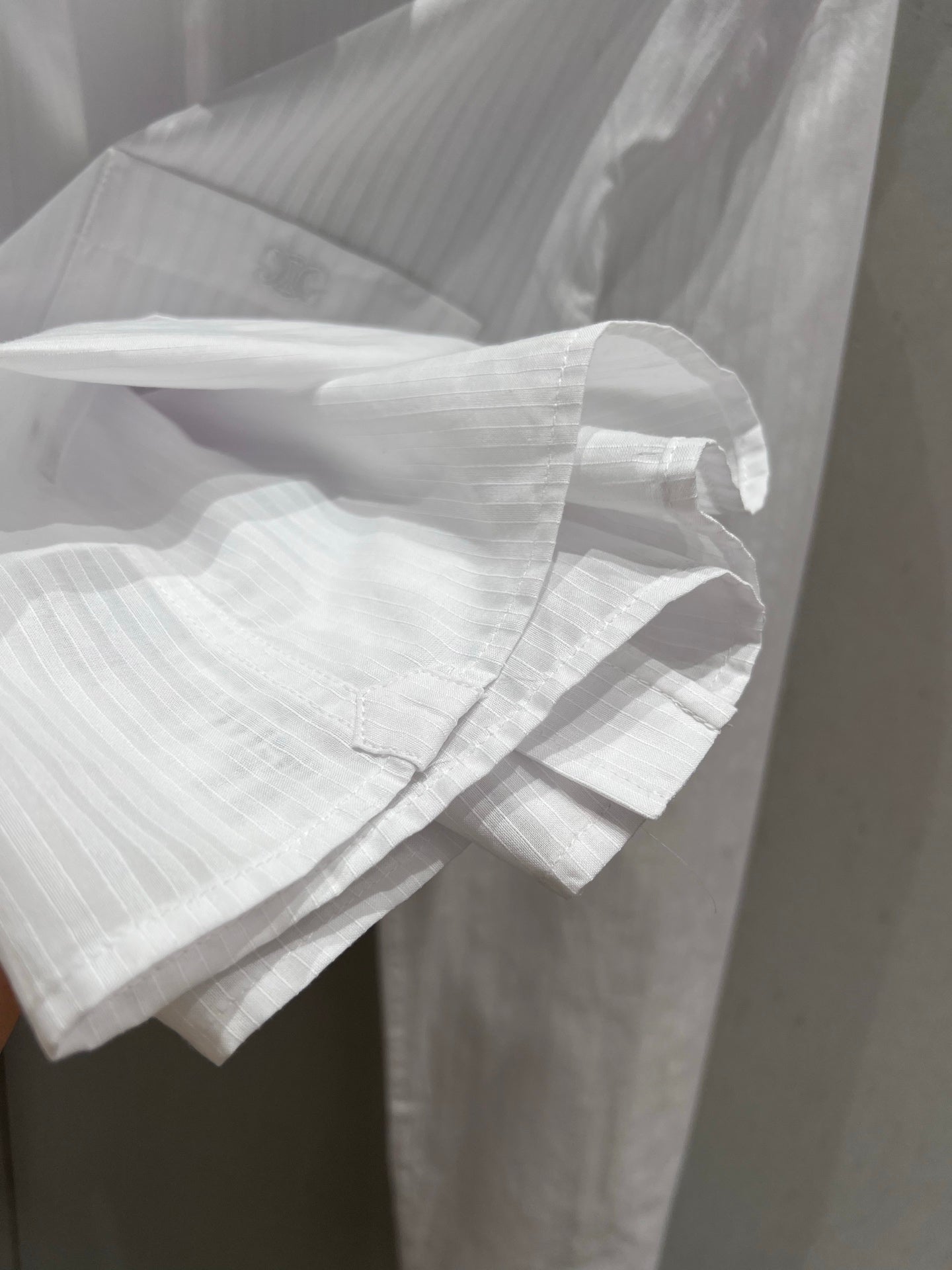 Celine 25 Striped Long-sleeved Shirt White Cotton 217877