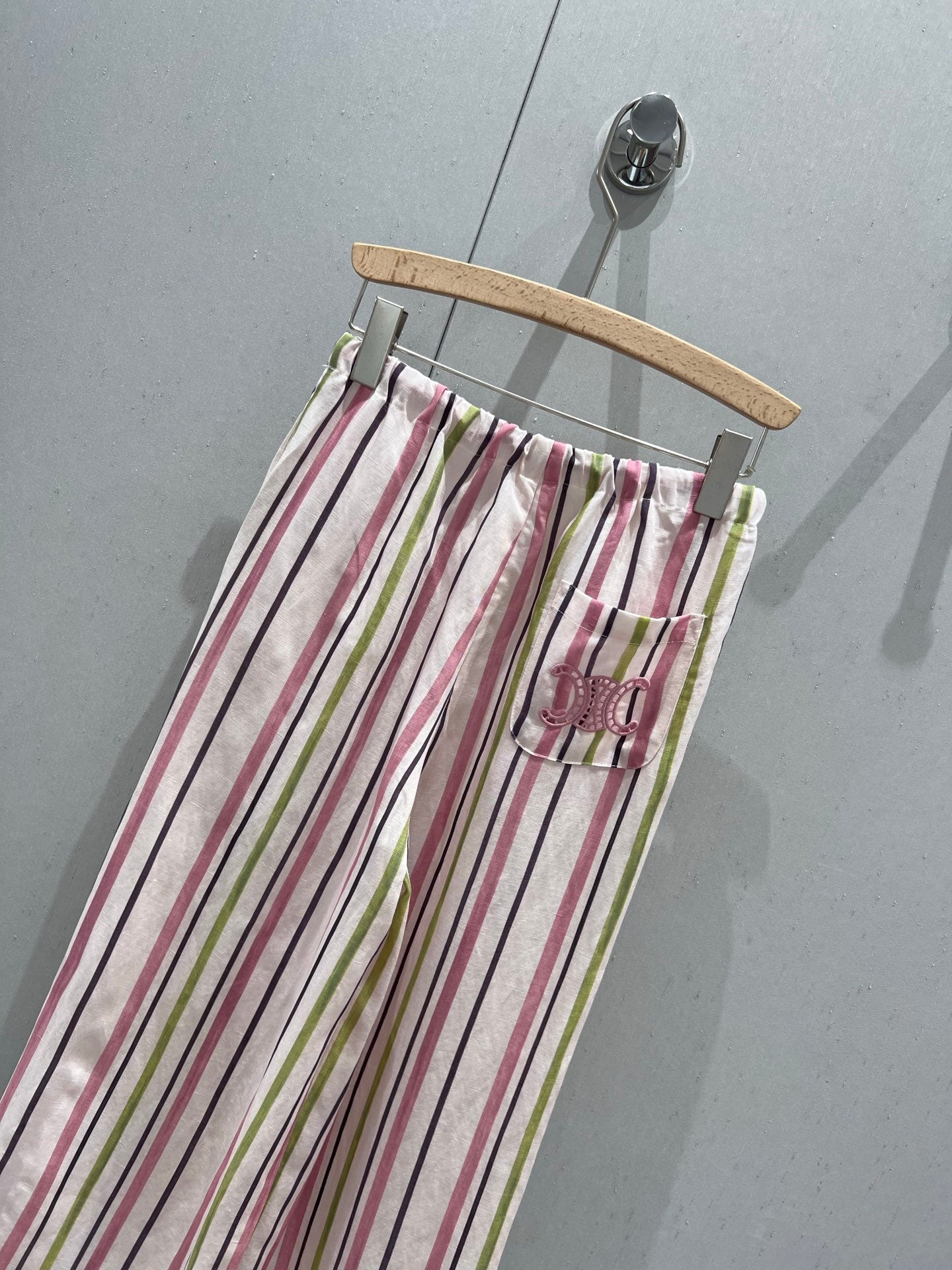 Celine 25 Arc de Triomphe Plaid Casual Pants Black White Polyester
