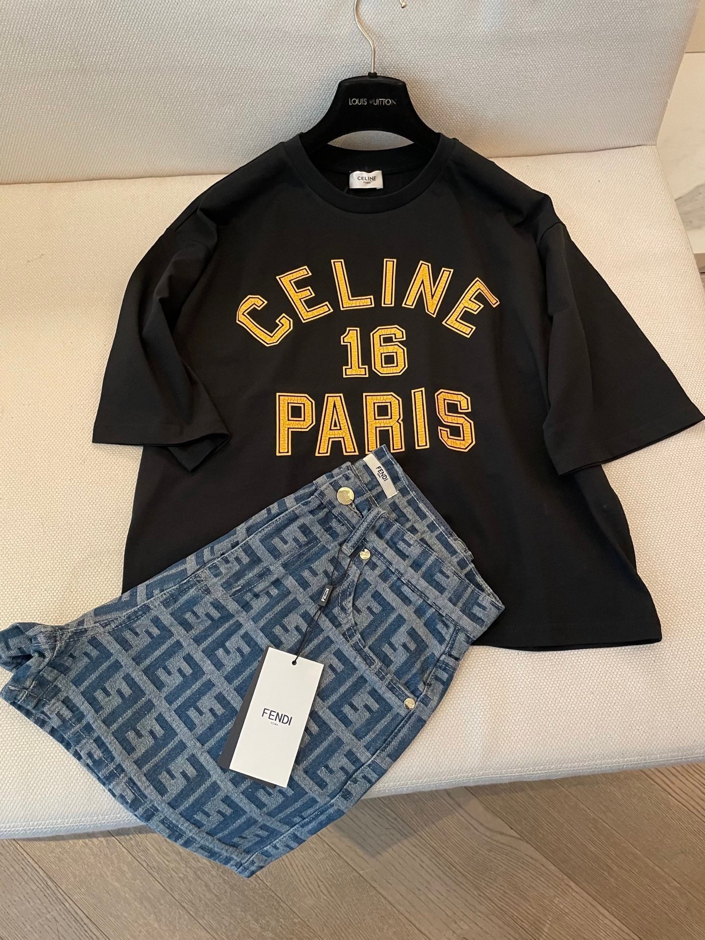 Celine 25 Arc de Triomphe Series Loose Fit Short Sleeve Top Cotton