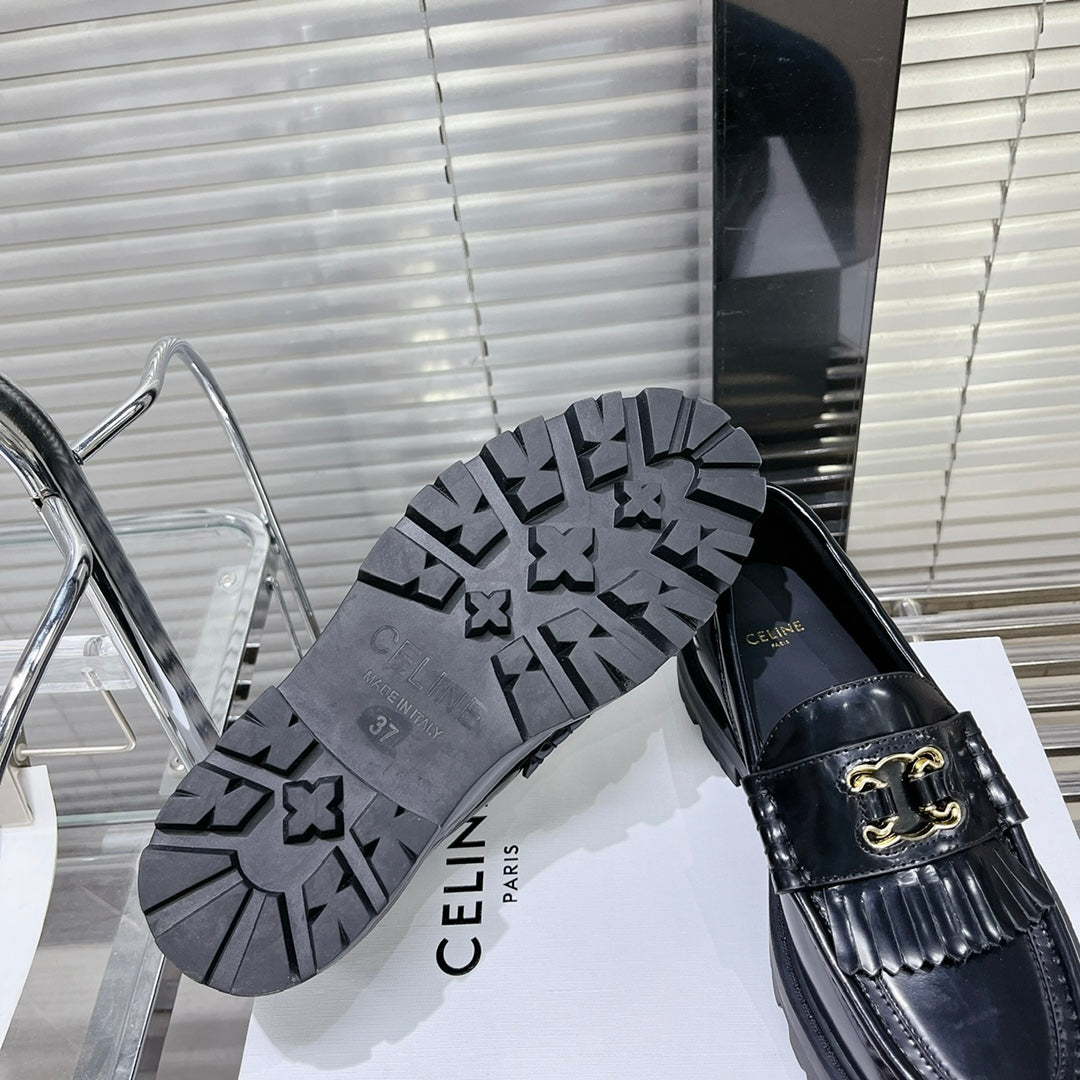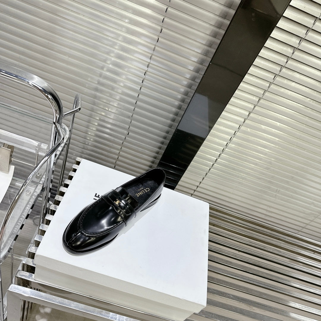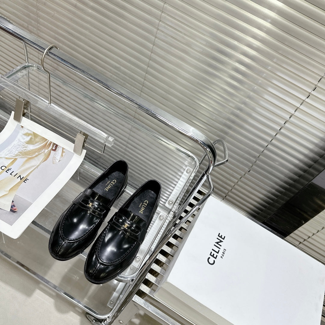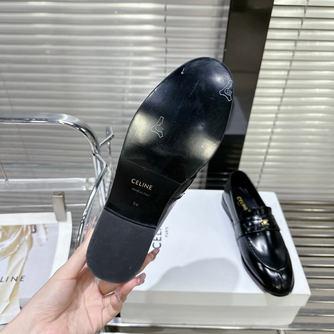 CELINE Buckle Triomphe Loafers Black Leather 285958