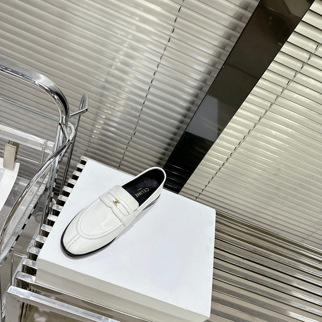 CELINE Buckle Triomphe Loafers White Leather 285957