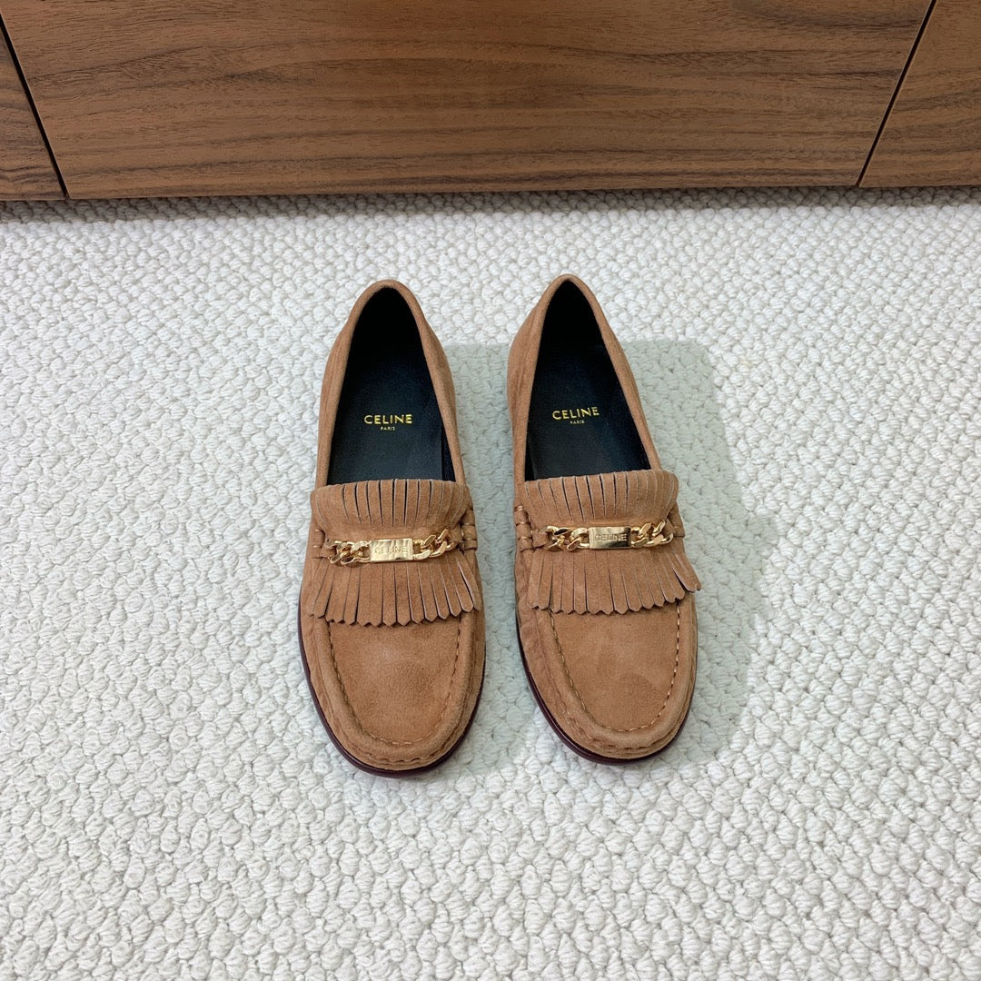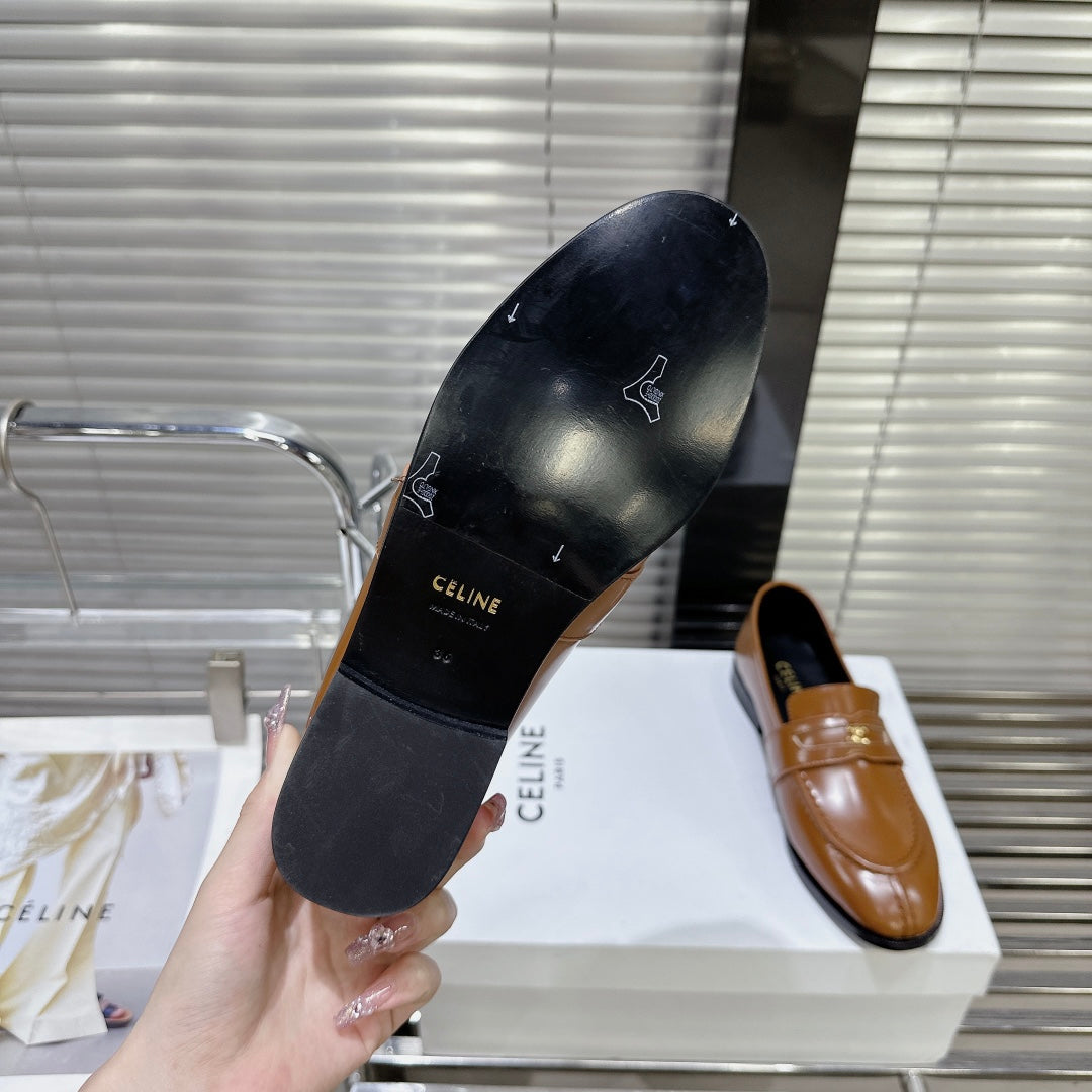 CELINE Buckle Triomphe Loafers Golden Leather 285955