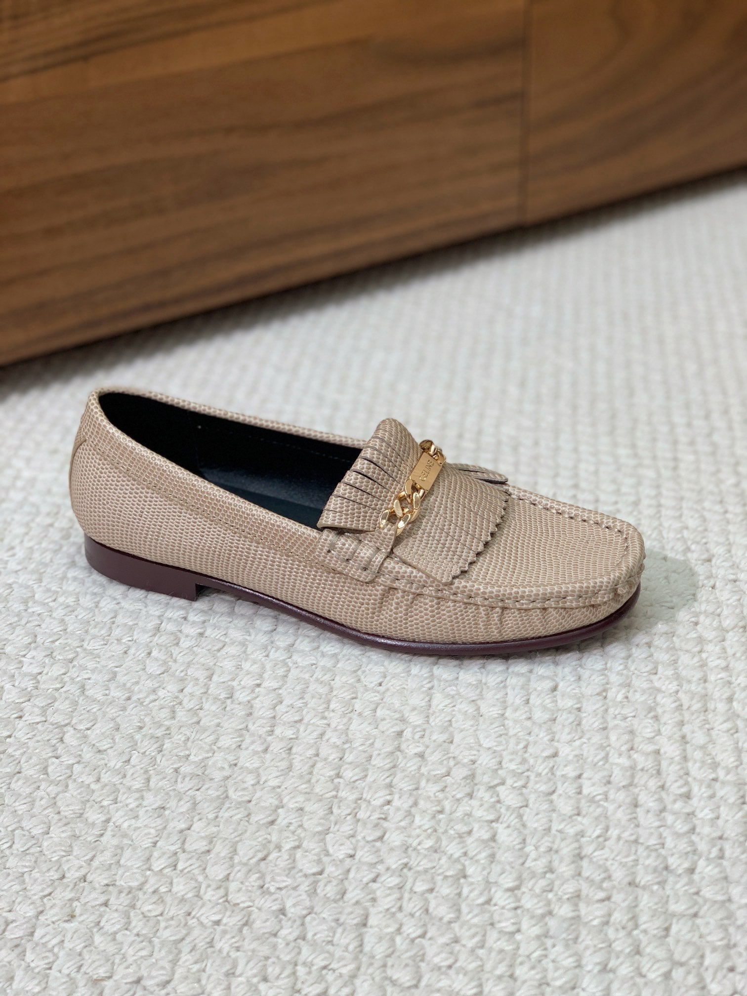 CELINE Buckle Triomphe Loafers Golden Leather