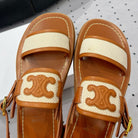 SANDALS FLAT SHOES WHITE CARAMEL BROWN