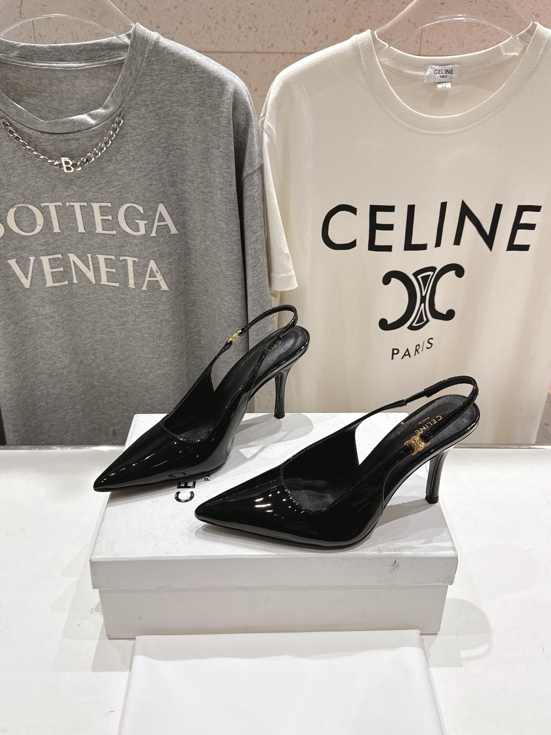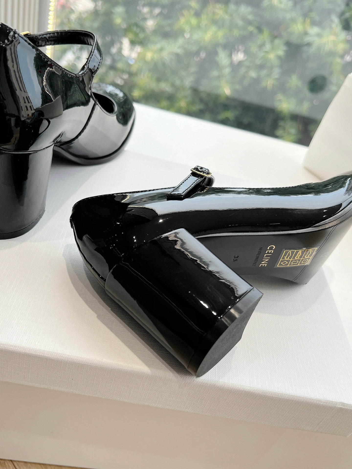 CELINE Alma Triomphe Slingback Black Patent Calfskin 235705