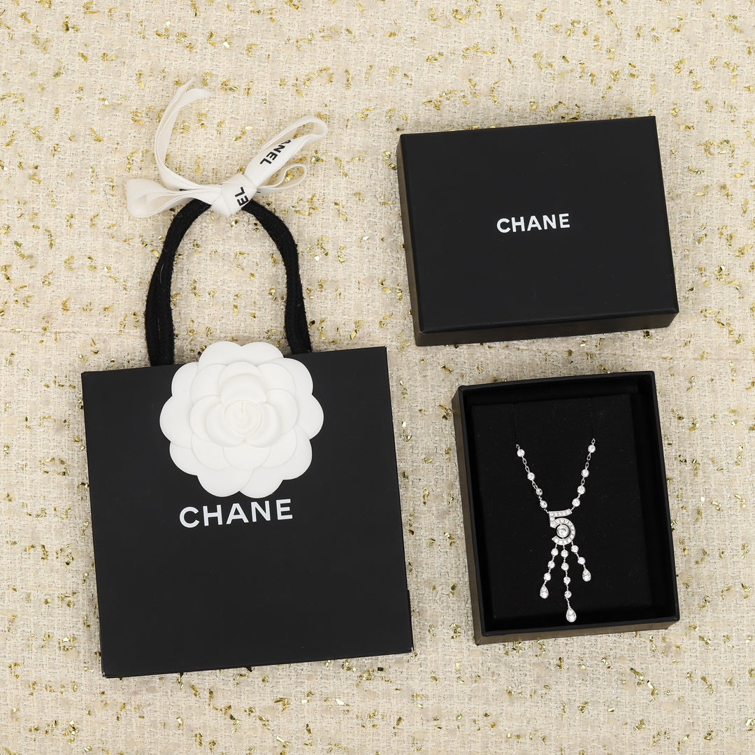 CHANE RUBAN BOW SILVER DIAMOND NECKLACE