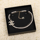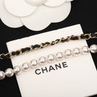 CHANE PEARLS AND LEATHER STRAPS GOLD NECKLACE TYPE 1
