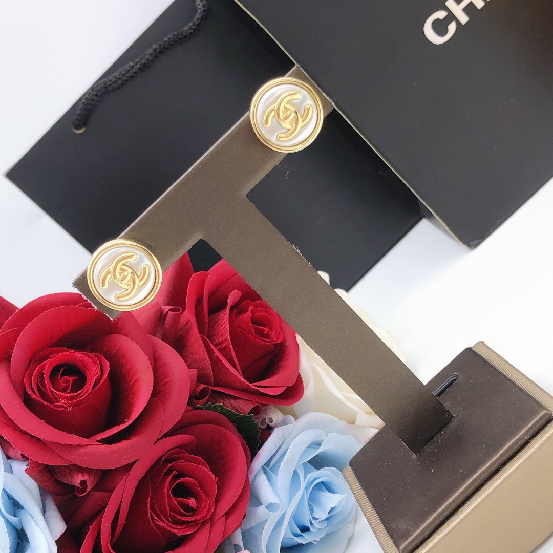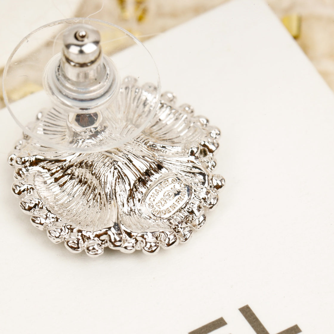 CHANE 23 FULL DIAMOND SIEVE DOUBLE C GOLD EARRINGS