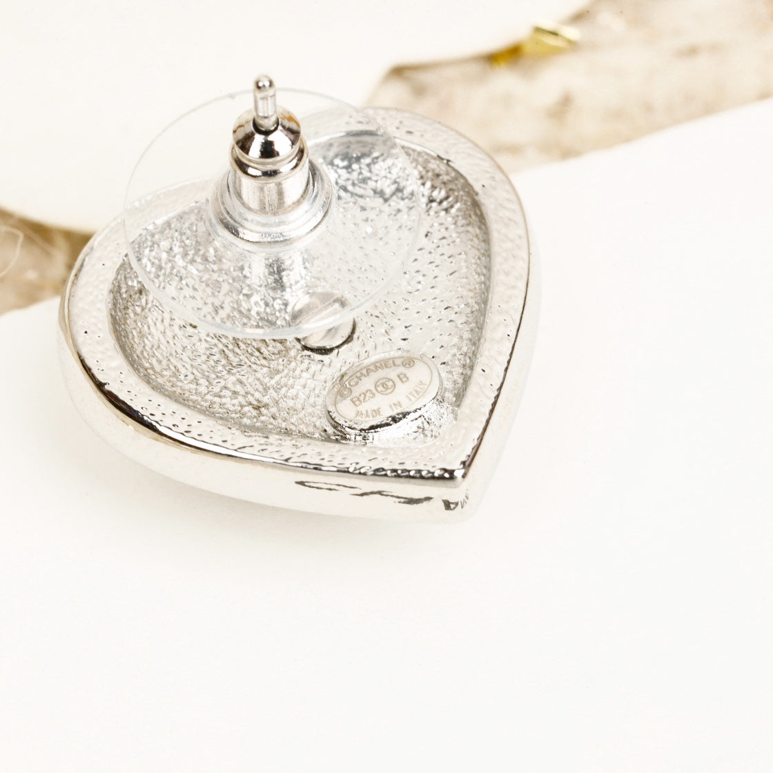 DOUBLE C DROP HEART SILVER DIAMONDS EARRINGS