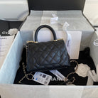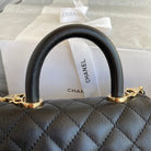 CC 24K Coco Hanle Mini 19cm Black Grained Calfskin Gold Hardware