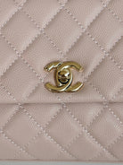 coco handle flap bag 24cm pastel pink quilted caviar leather