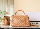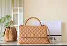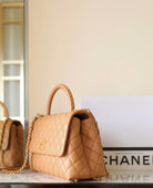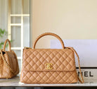 coco handle flap bag 29cm brown quilted caviar leather