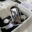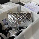 FLAP BAG MEDIUM 24CM SILVER METALIC CALFSKIN
