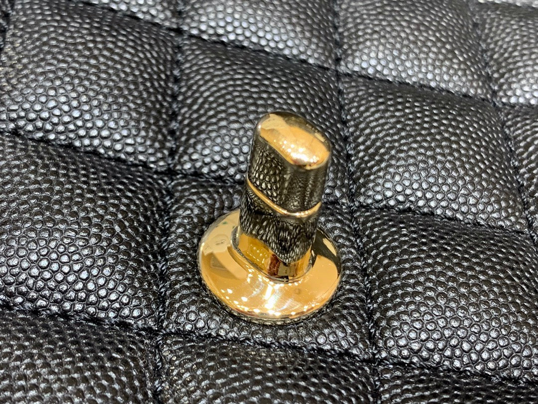 CC 24K Flap Bag 23cm Black Grained Calfskin Gold Hardware