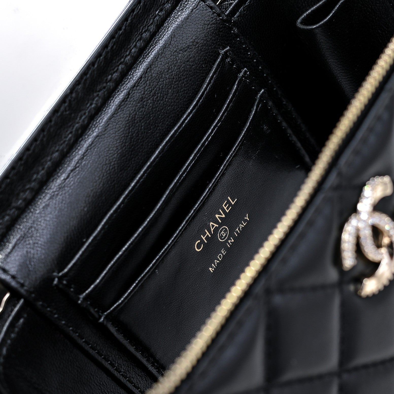 CC 25C Vanity Top Handle 17cm Black Grained Calfskin Light Gold Hardware