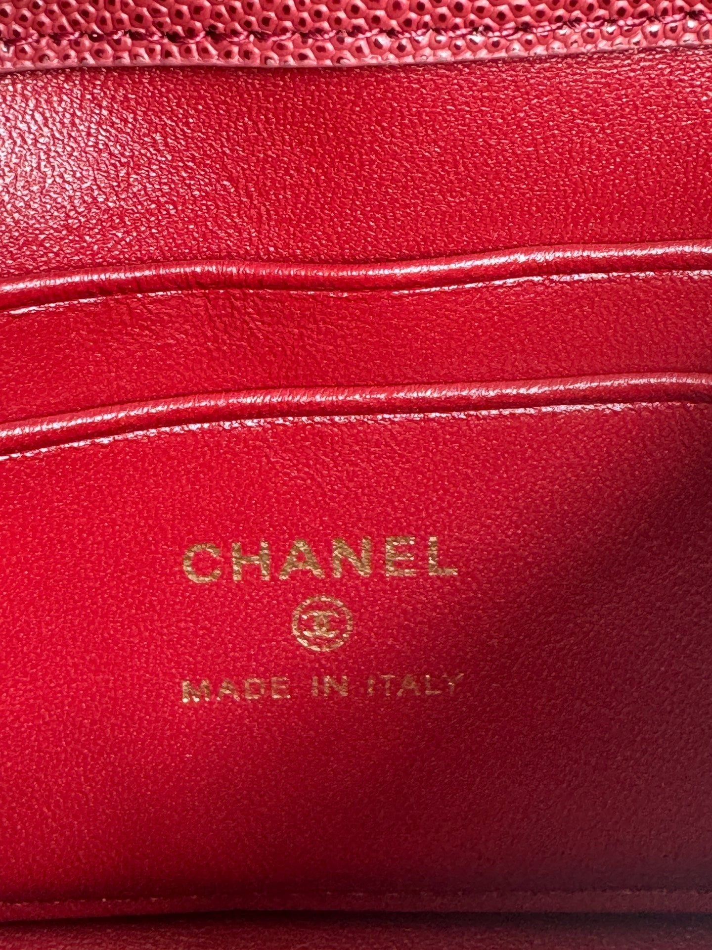 CC 24K Coco Hanle Mini 19cm Black Red Grained Calfskin Gold Hardware