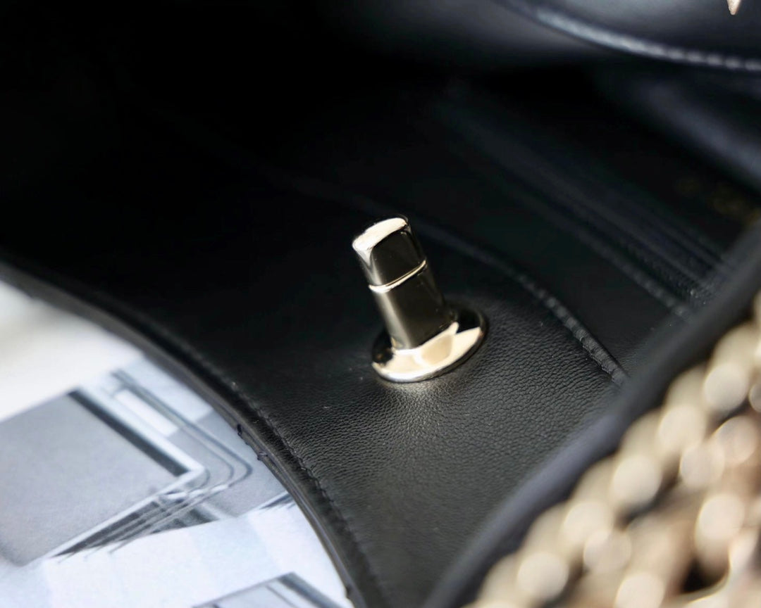 CC 24B Mini Flap Bag 20cm Black Lambskin Gold Hardware