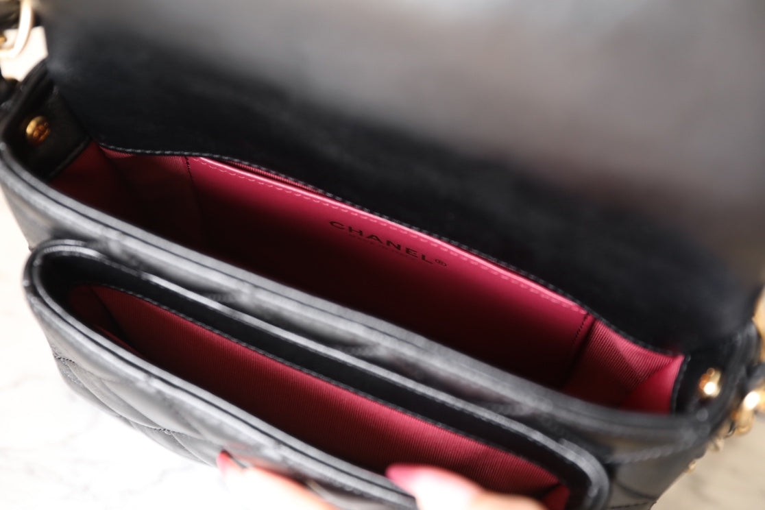 cc 24a flap bag 20cm top handle black lambskin gold hardware
