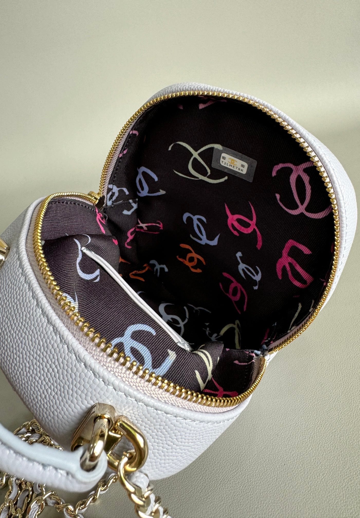 CC 25C Hobo Bag 21.5cm Top Handle White Grained Calfskin