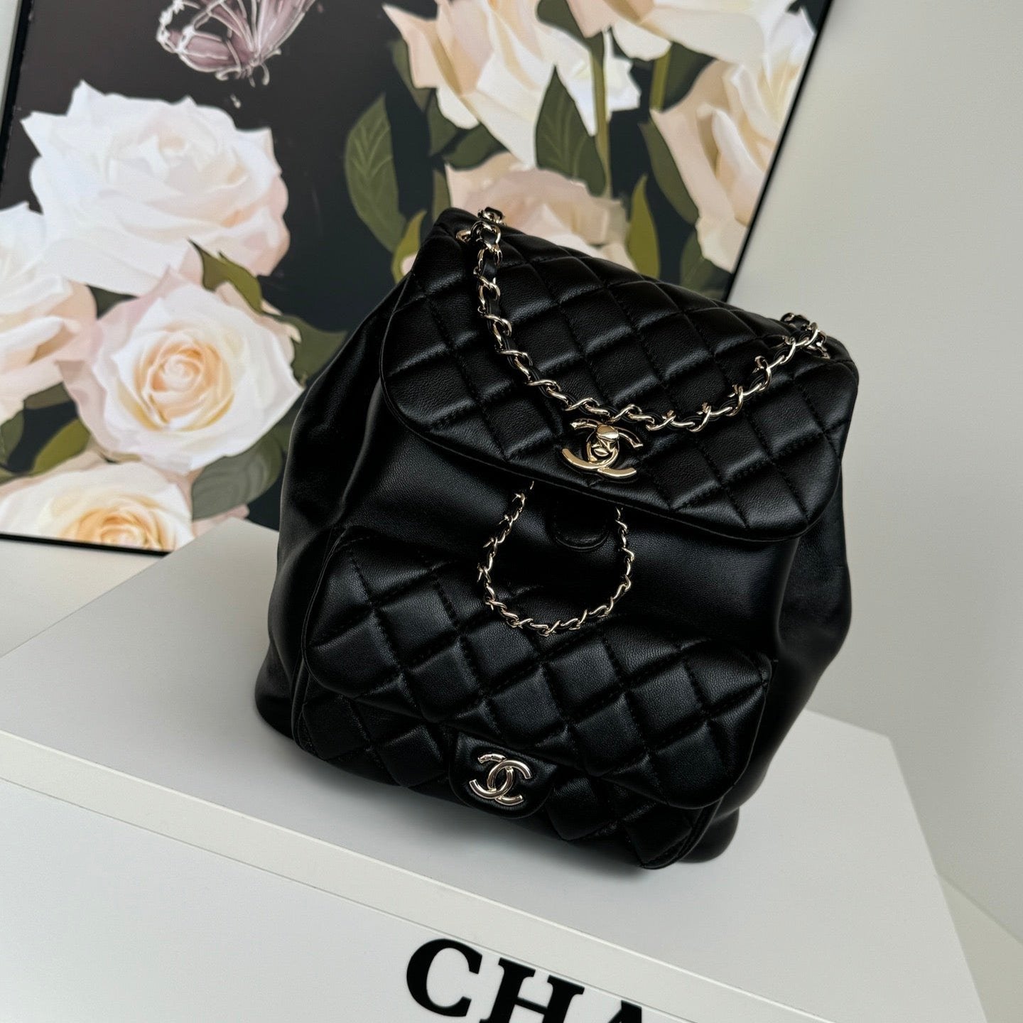 cc 25S Backpack 25cm Black Mesh Calfskin