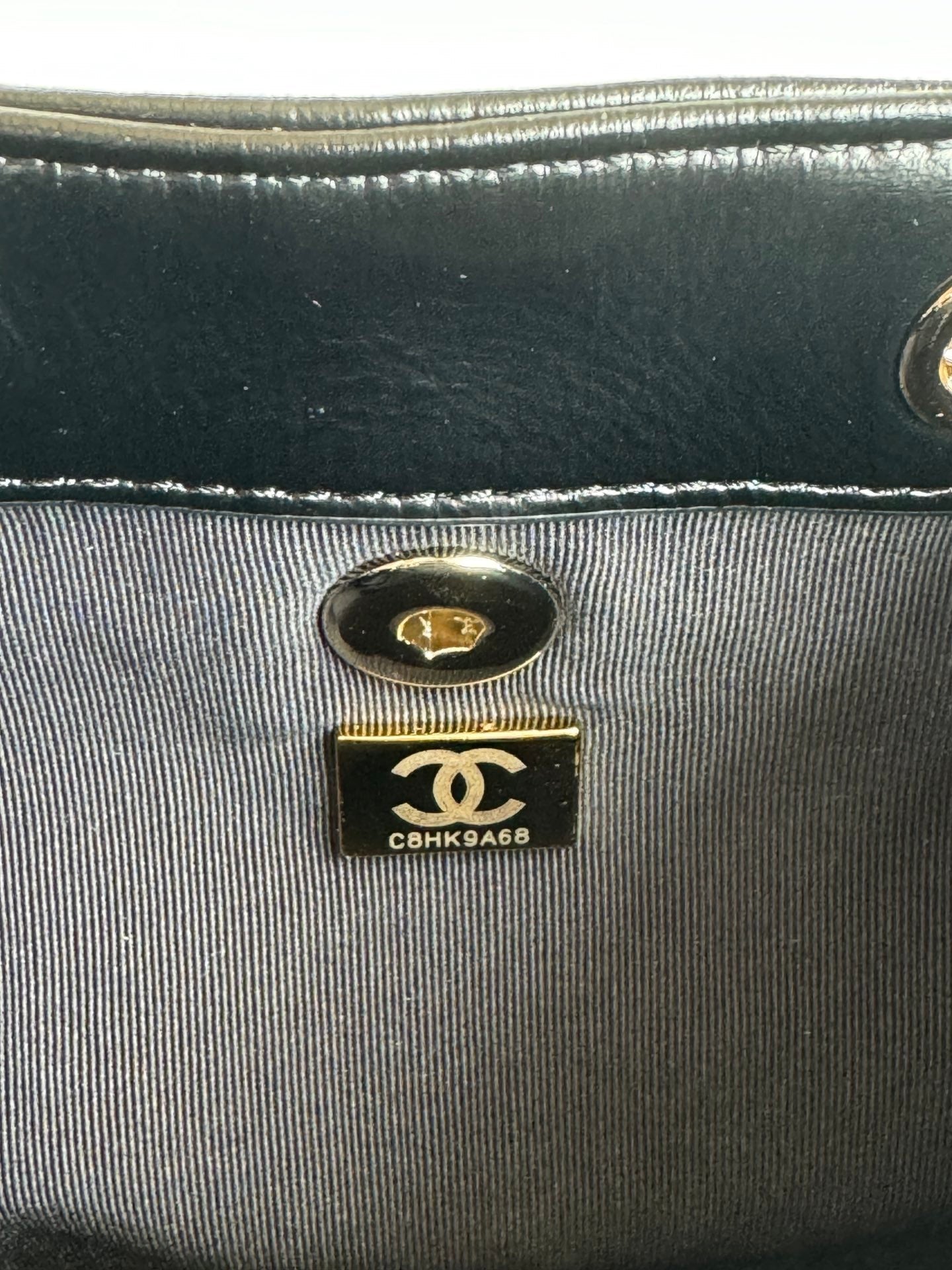 CC 25C Hobo Bag 21.5cm Top Handle Black Grained Calfskin