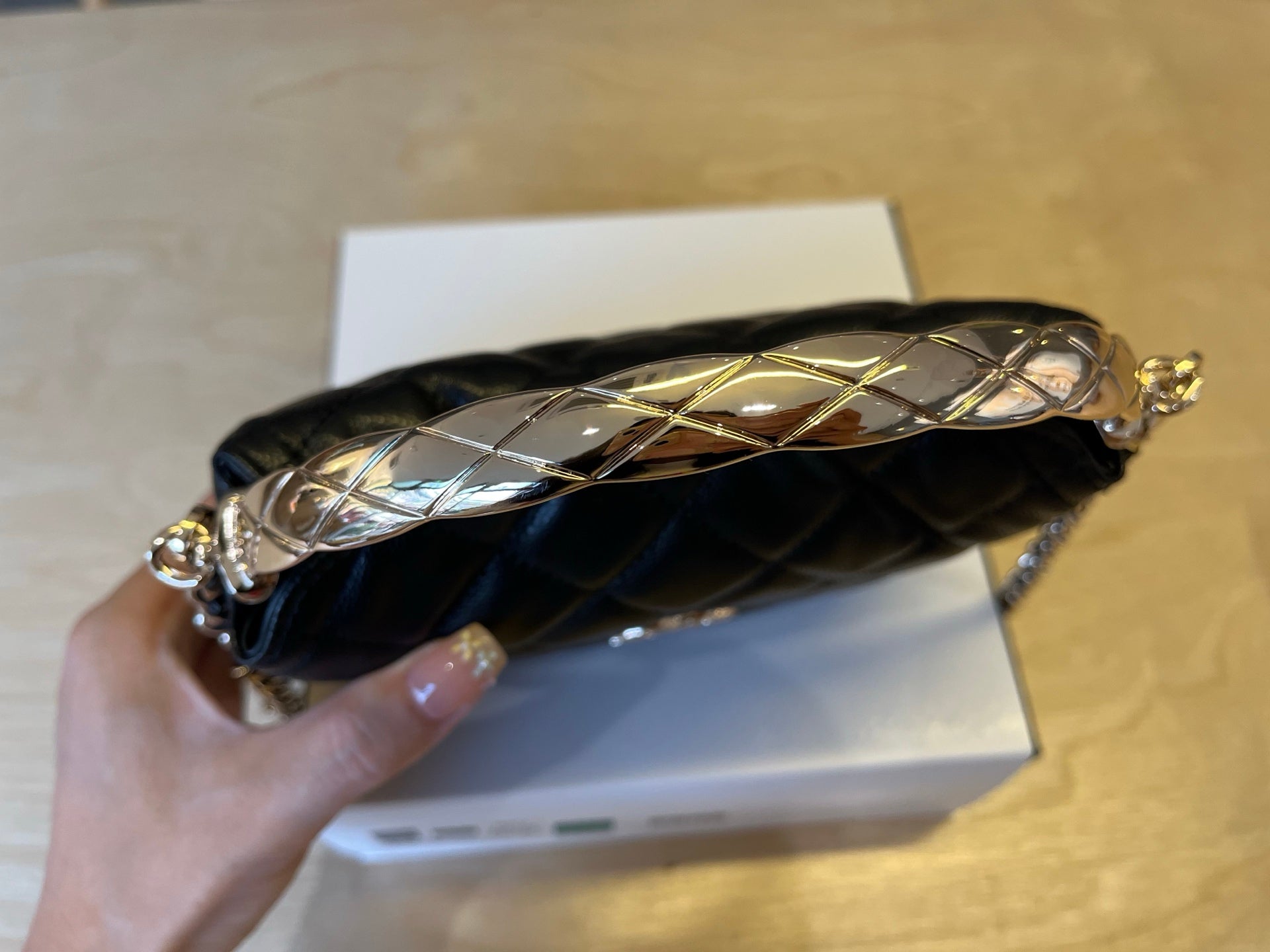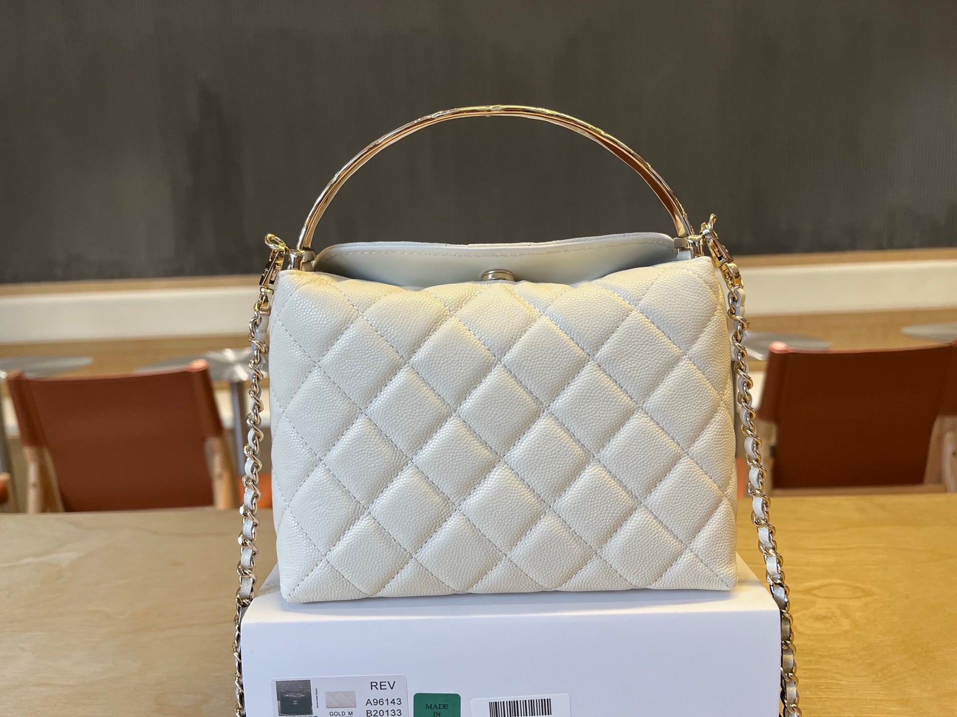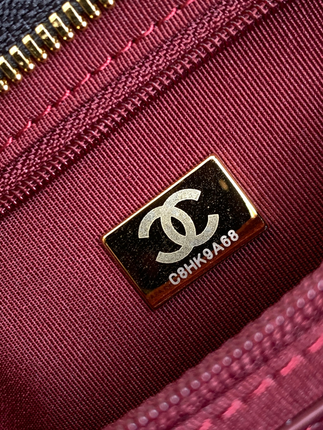 CC 25C Vanity Top Handle 21cm Black Grained Calfskin Light Gold Hardware