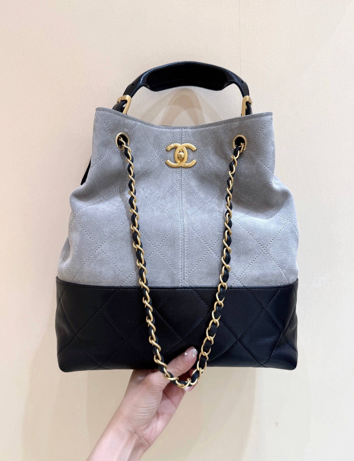 CC 25A Flap Bag 29cm Grey Suede Black Calfskin