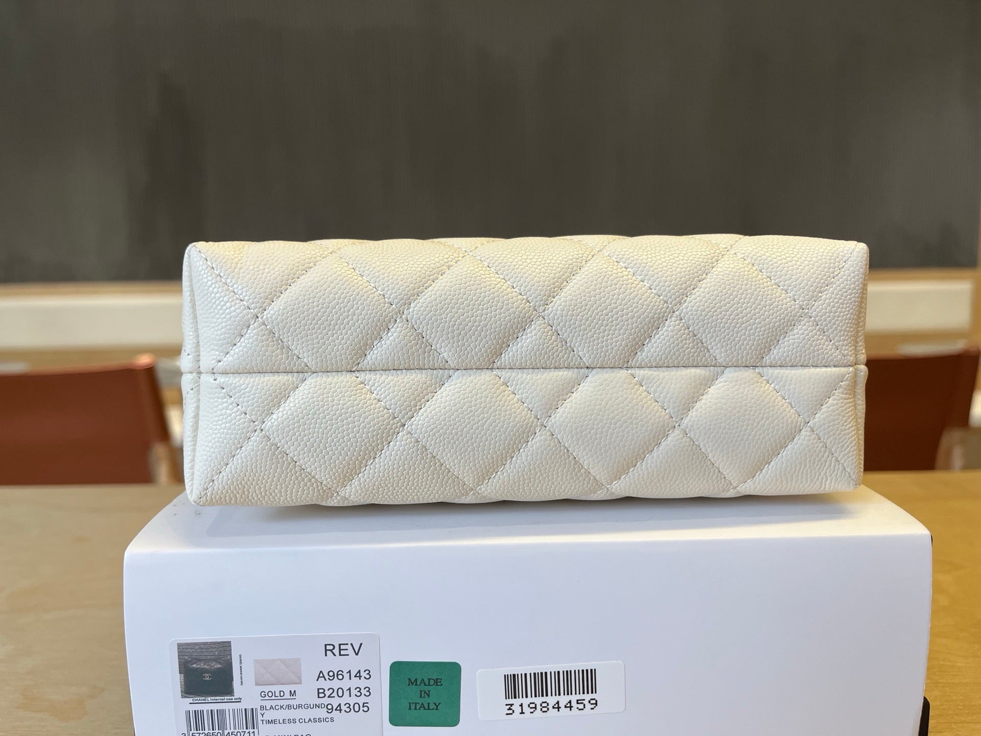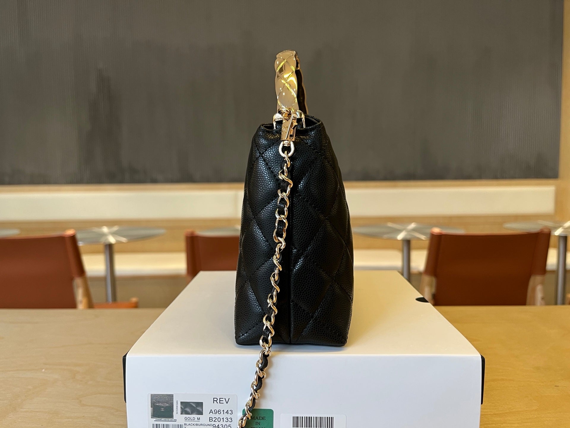 CC Caviar Flap Bag 17.5 Gold Logo Black Calfskin