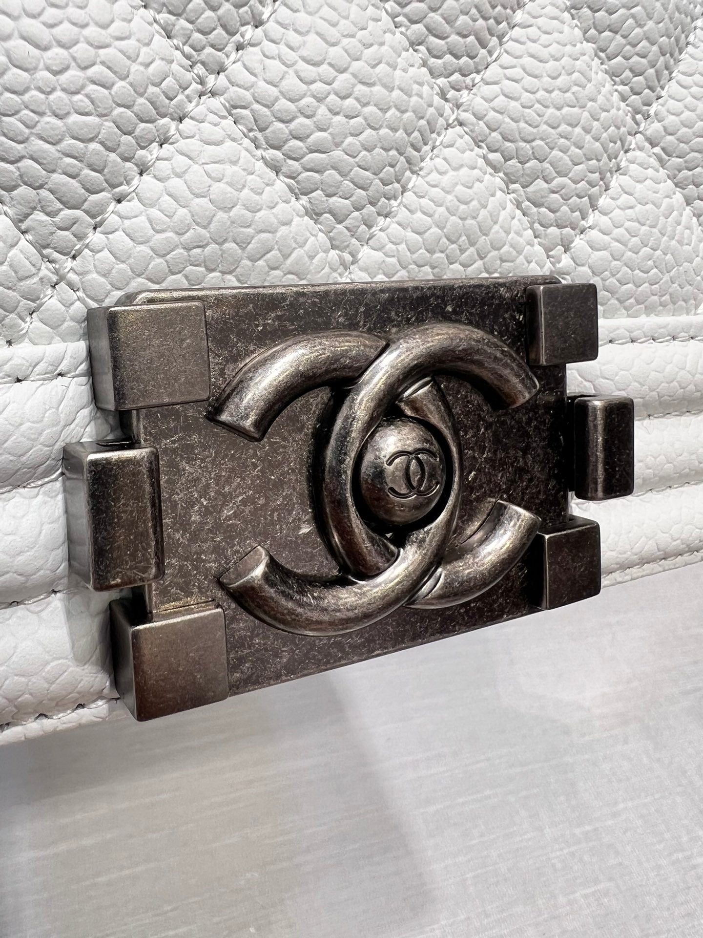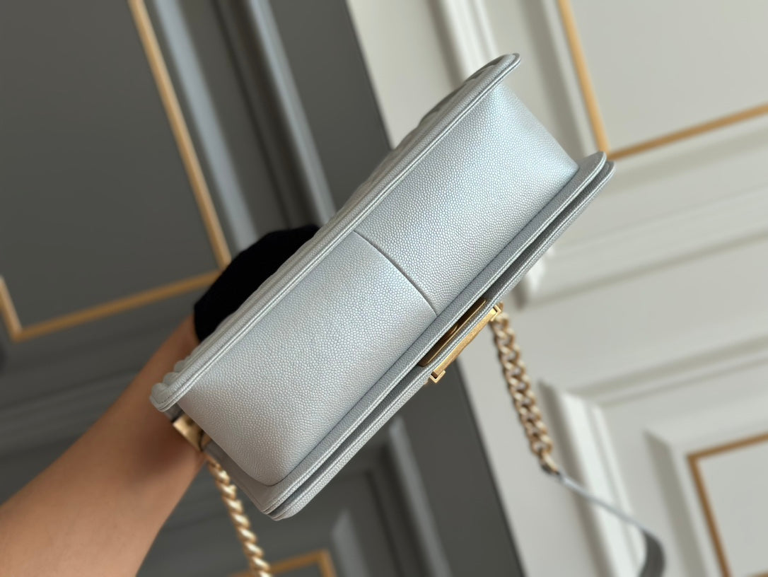 BOY BAG MEDIUM 25 WHITE CAVIAR GOLD HARDWARE