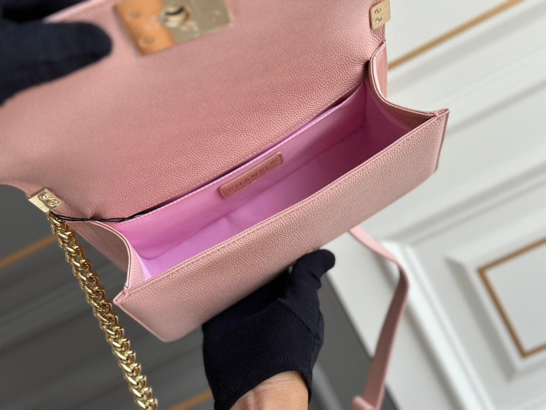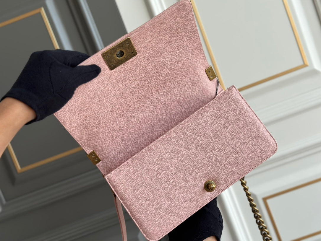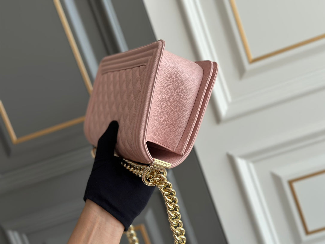 BOY BAG MEDIUM 25 LIGHT PINK CAVIAR GOLD HARDWARE