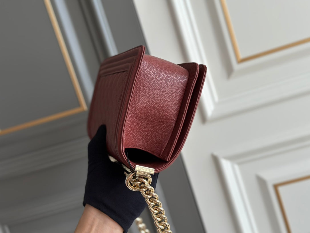 BOY BAG MEDIUM 25 BROWN CAVIAR GOLD HARDWARE