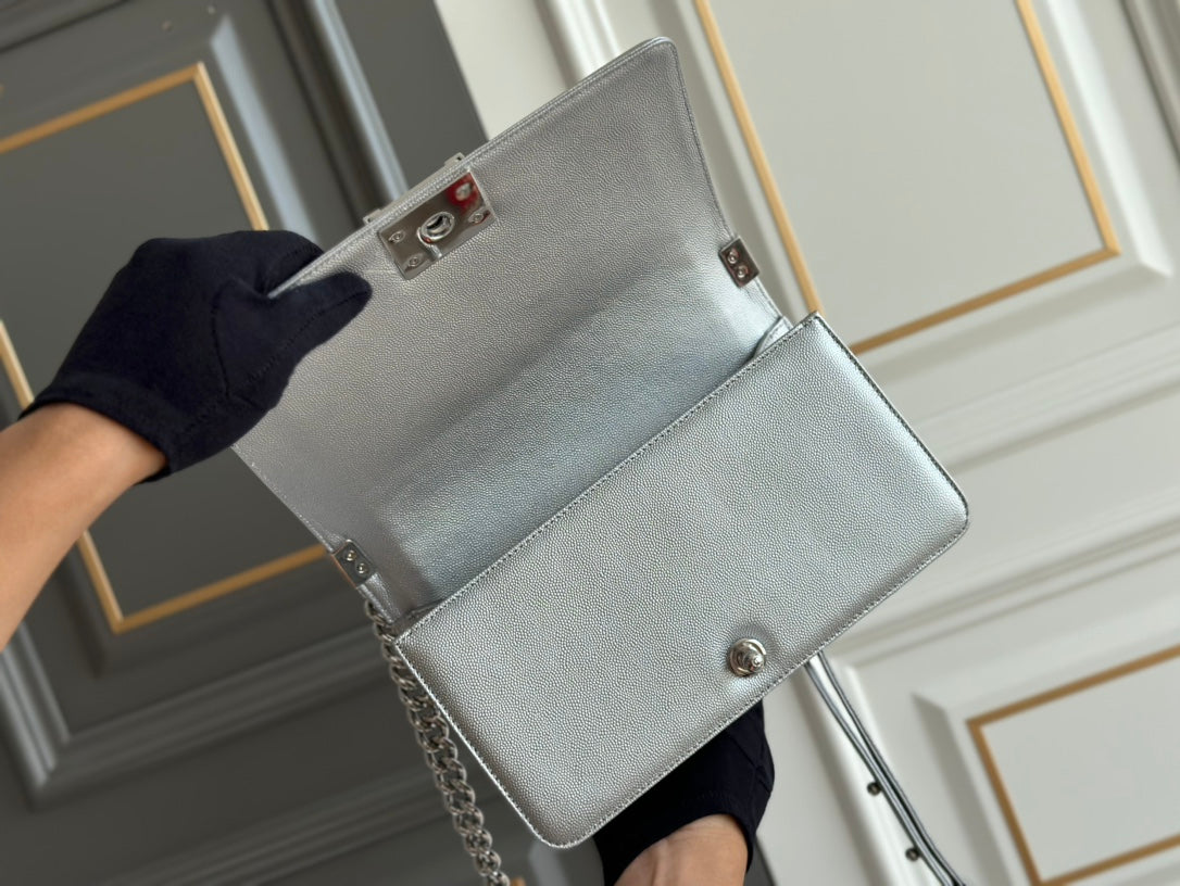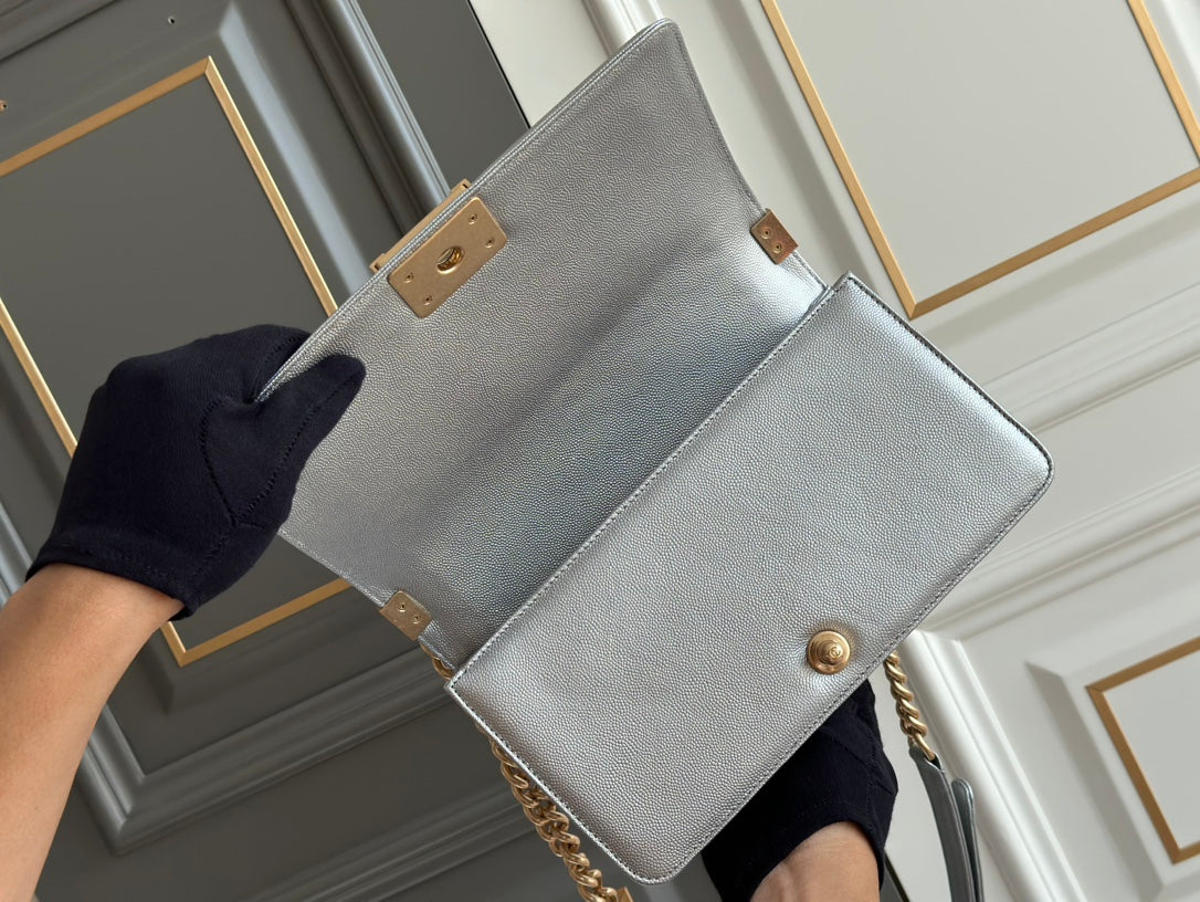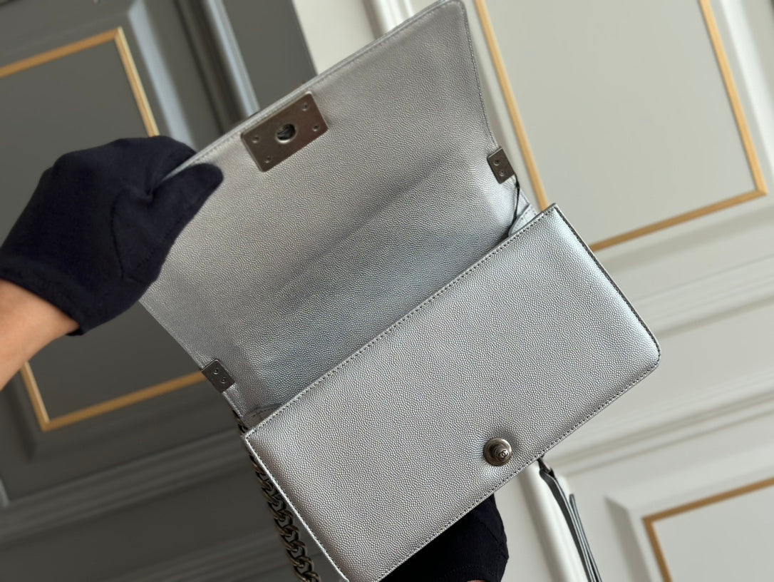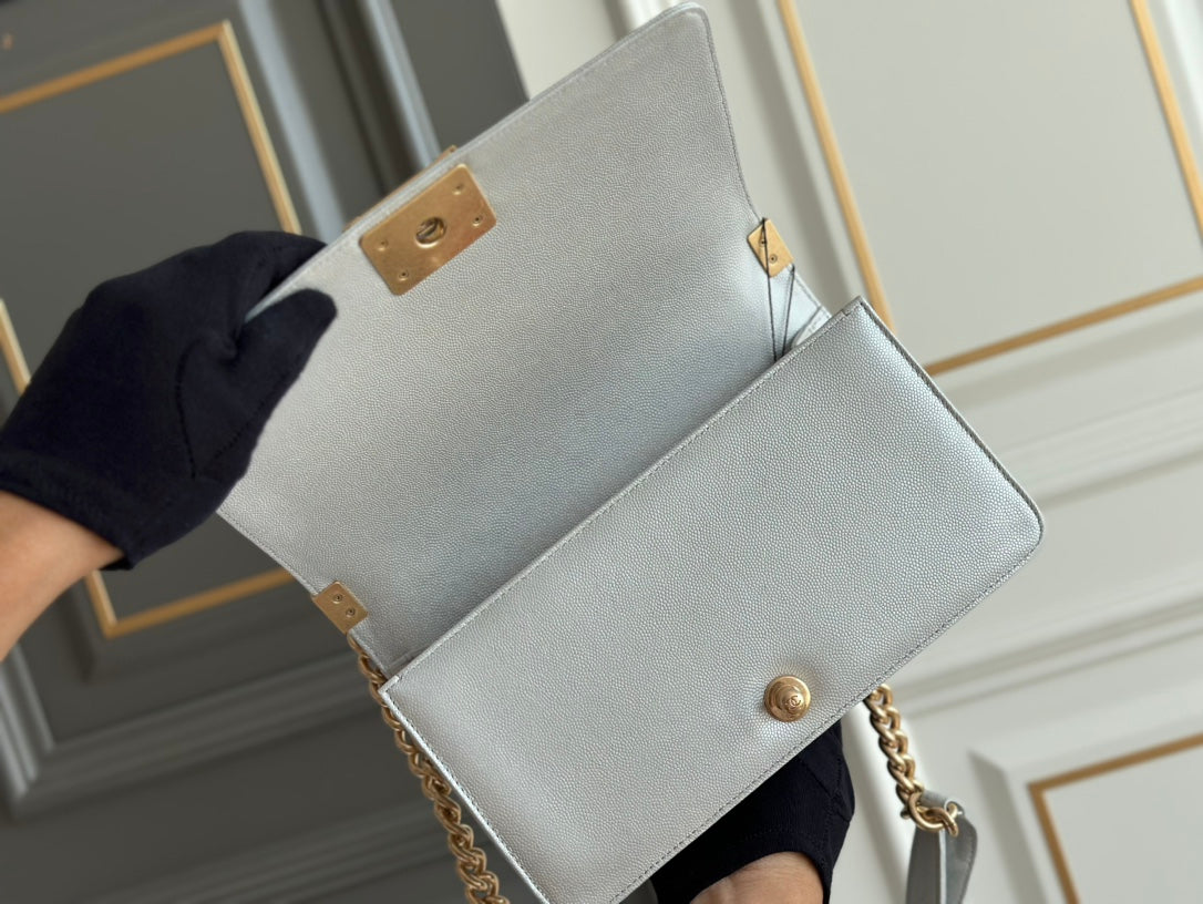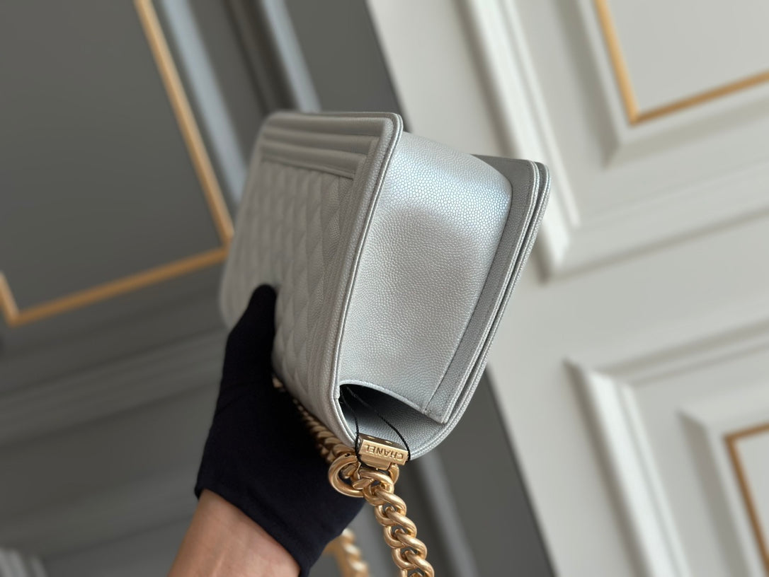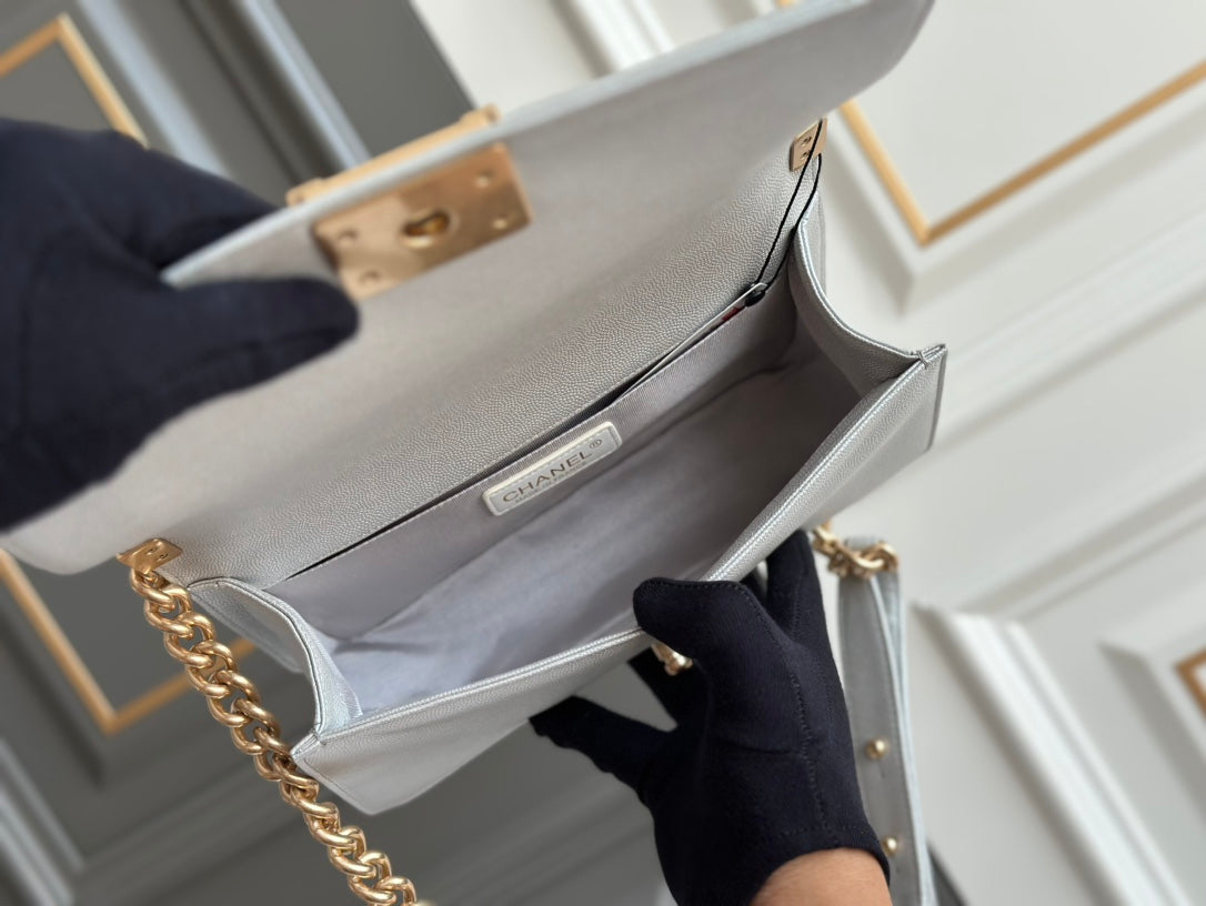 BOY BAG MEDIUM 25 GREY CAVIAR GOLD HARDWARE