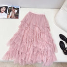 CC 25 Mesh Long Skirt Pink Polyester Fiber