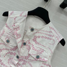 CC 25 Printed Denim Round Neck Vest Pink White Cotton