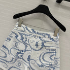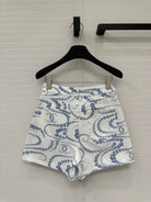 CC 25 Printed Denim Short Blue White Cotton