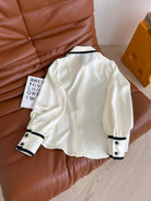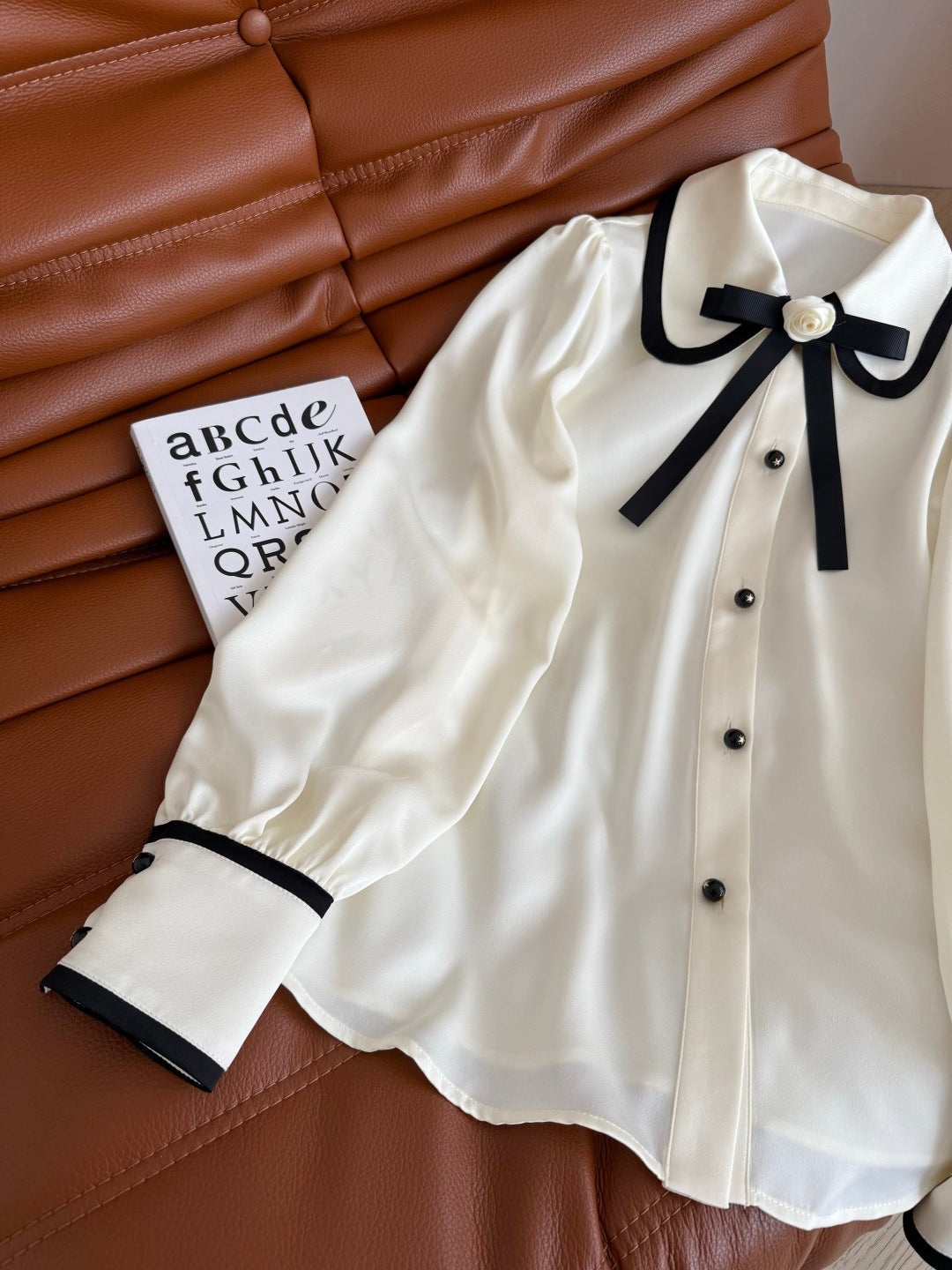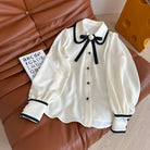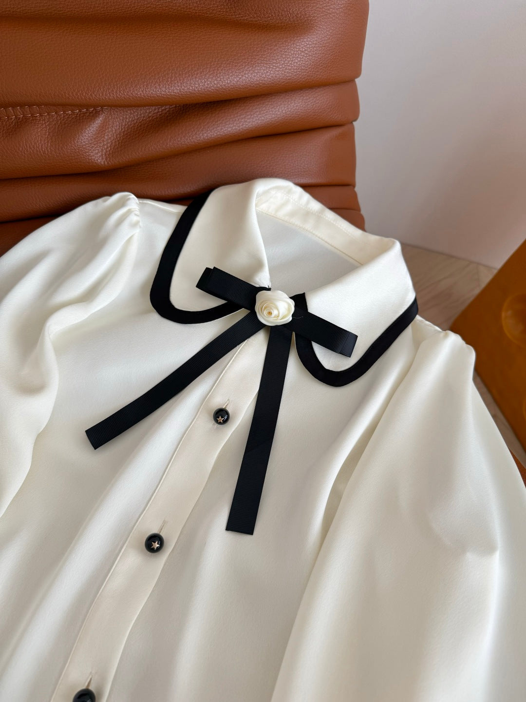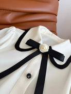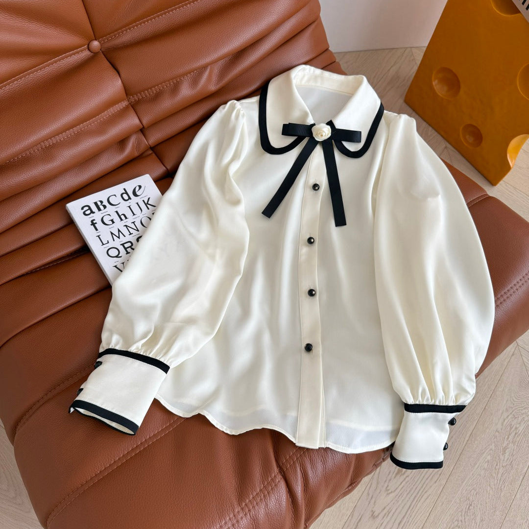 CC 25 Three-dimensional Floral Bow Shirt White Statin Fabric