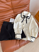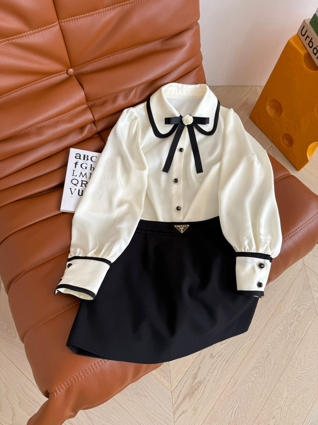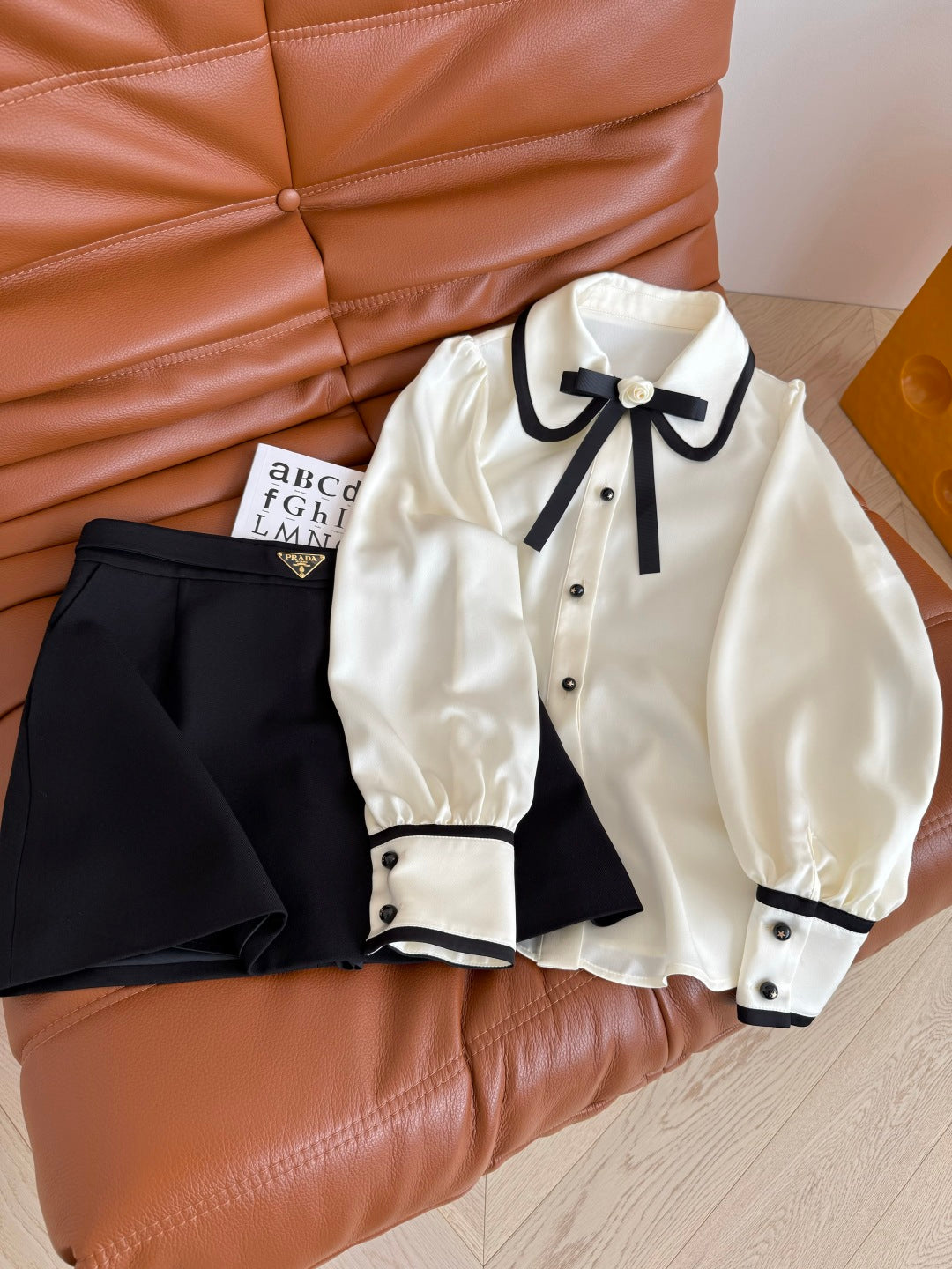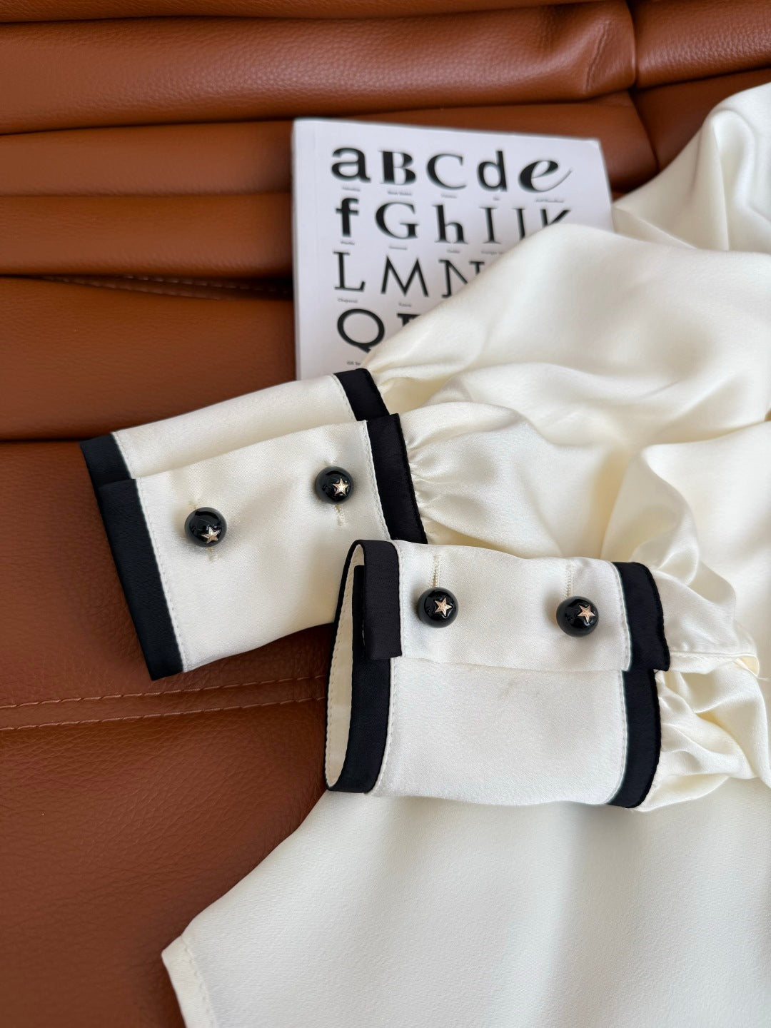 CC 25 Three-dimensional Floral Bow Shirt White Statin Fabric