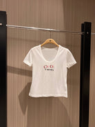 CC Hand-beaded Coco letter U-neck T-shirt Cotton