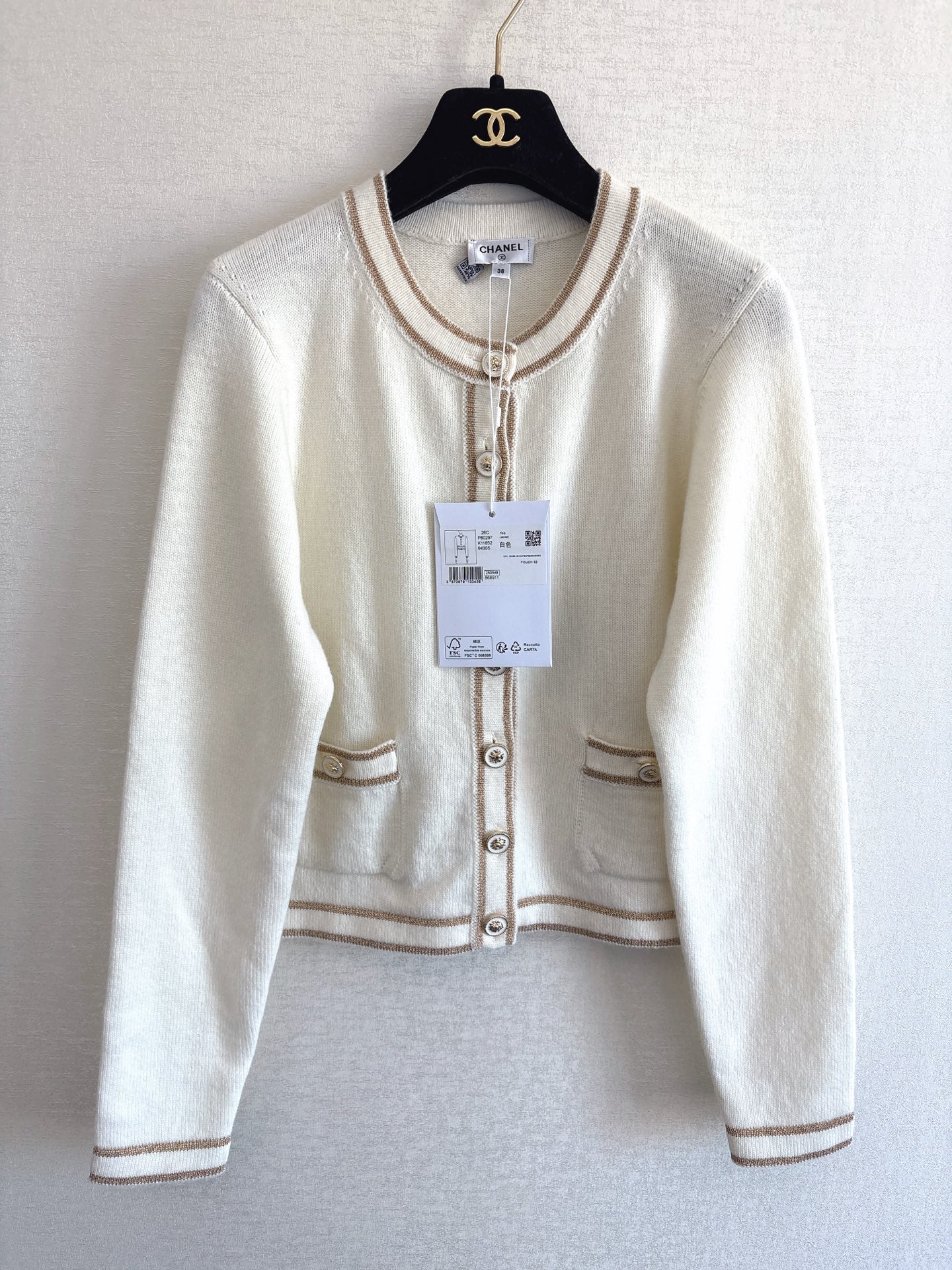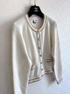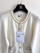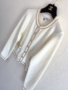 Chanel 2025 Crew Neck Long-sleeved Cardigan White Cashmere 329415