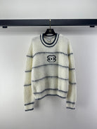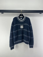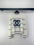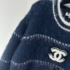 Chanel 2025 Fuzzy Striped Sweater Blue and White Wool 329253