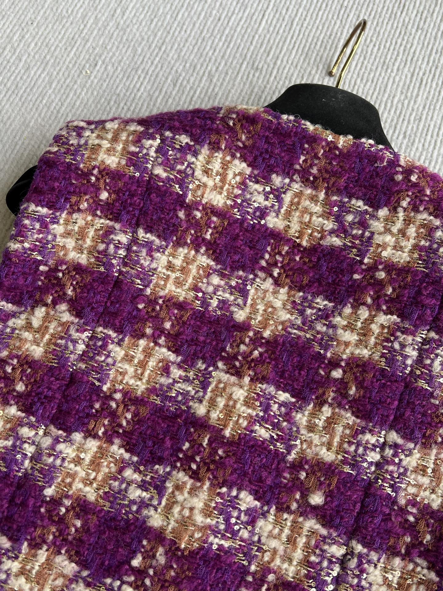 Chanel 2025 Plaid Tweed Vest Jacket Puprle Wool Polyester 325378