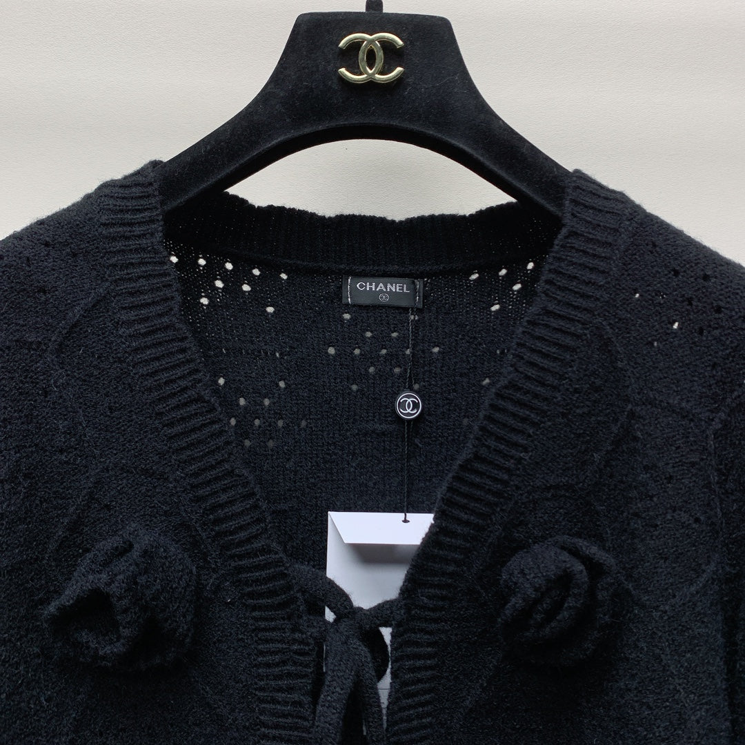 CC 25 Cardigan Black With Flowers Wool 293386