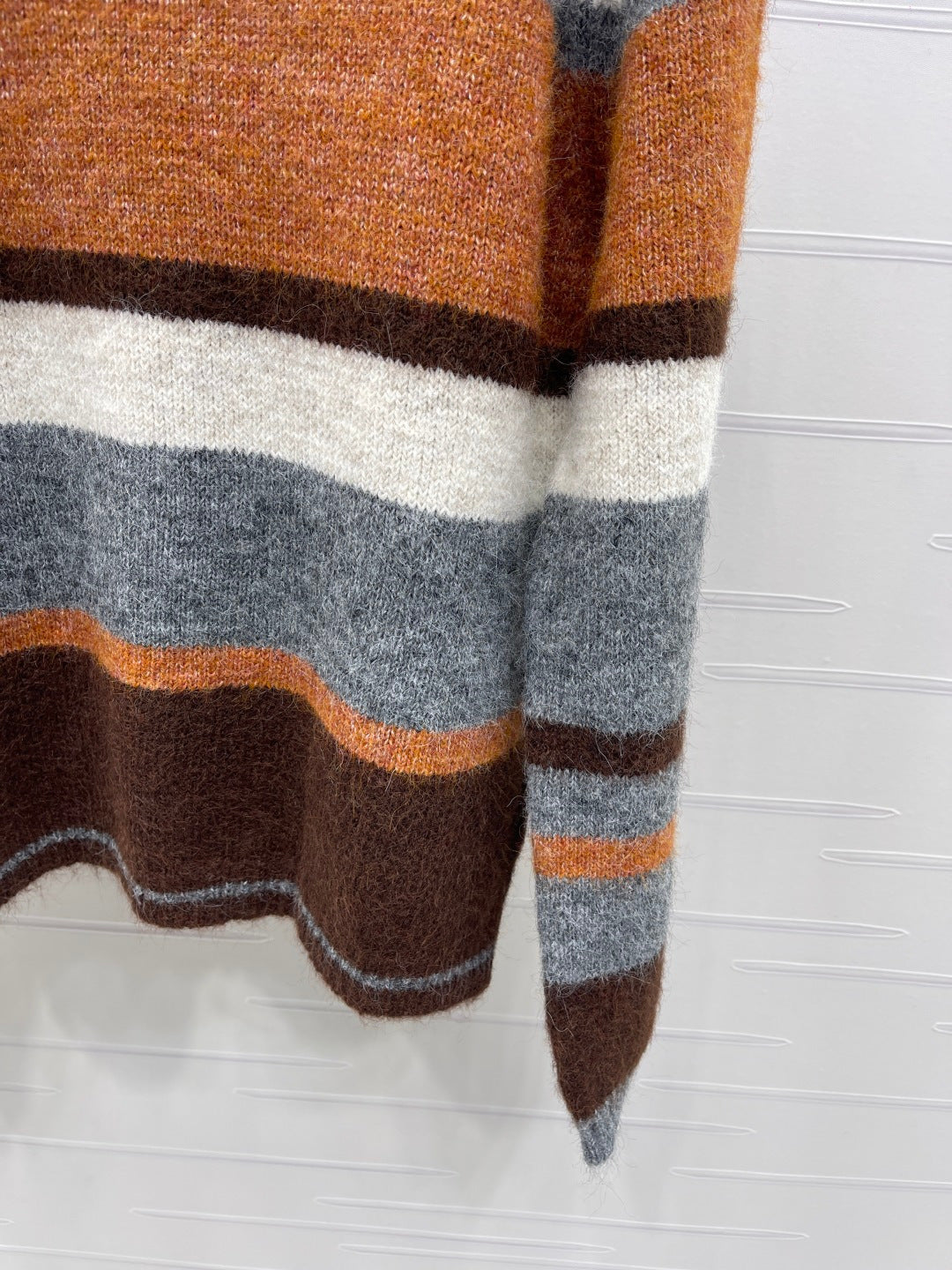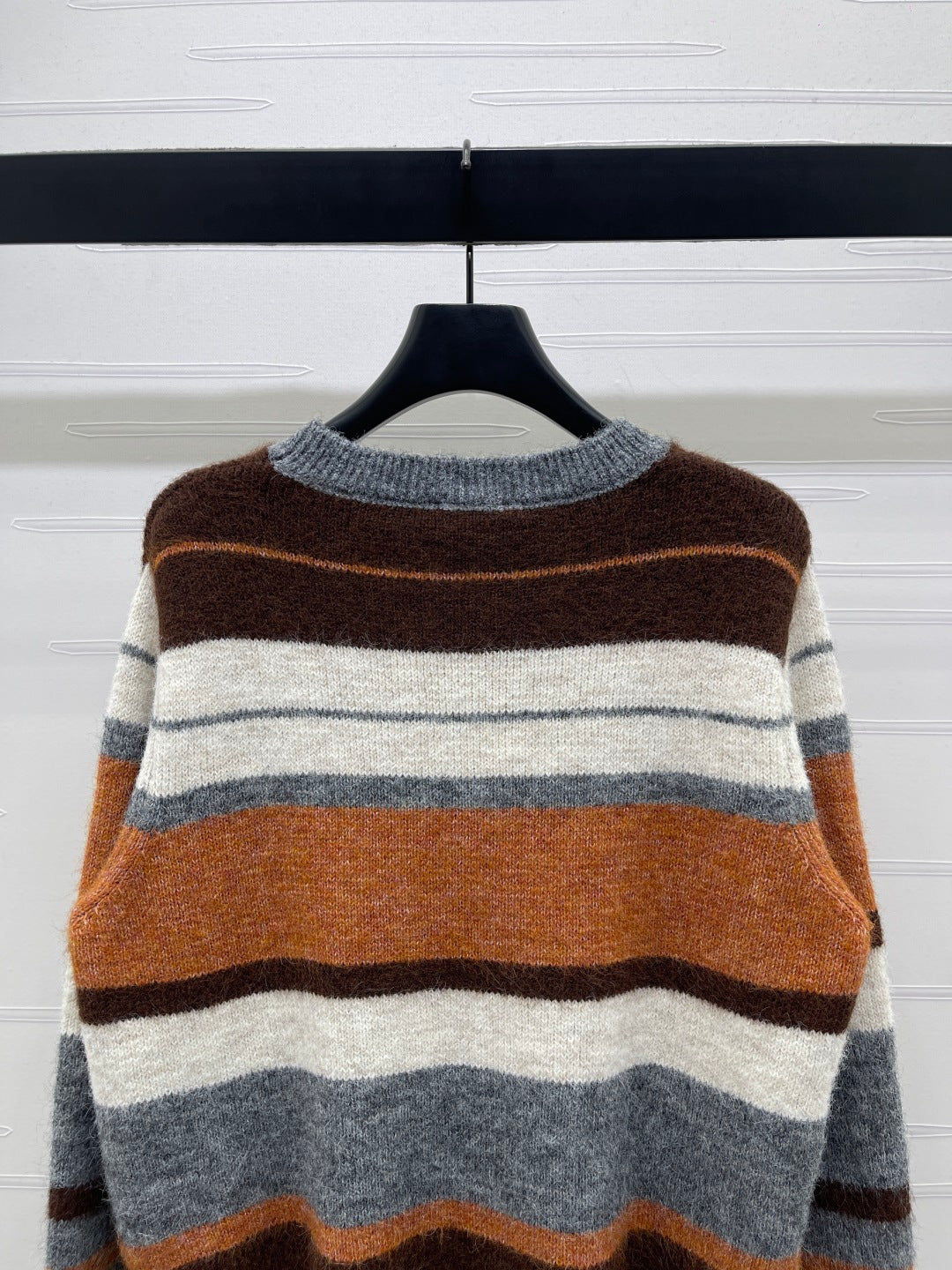 Chanel 2025 Striped Pullover Long-sleeved Sweater Brown Wool Cashmere 319607