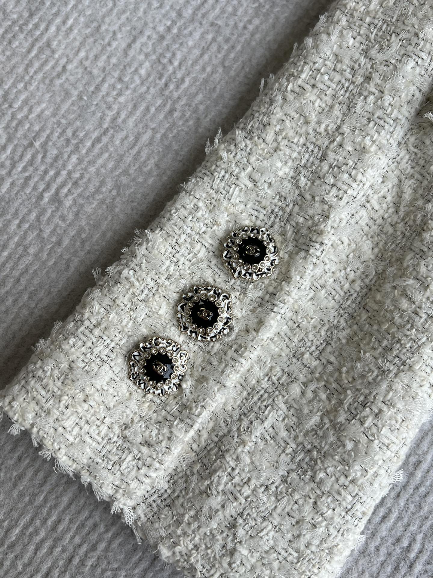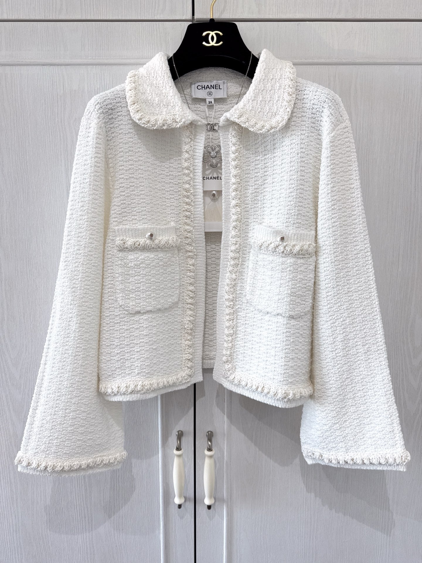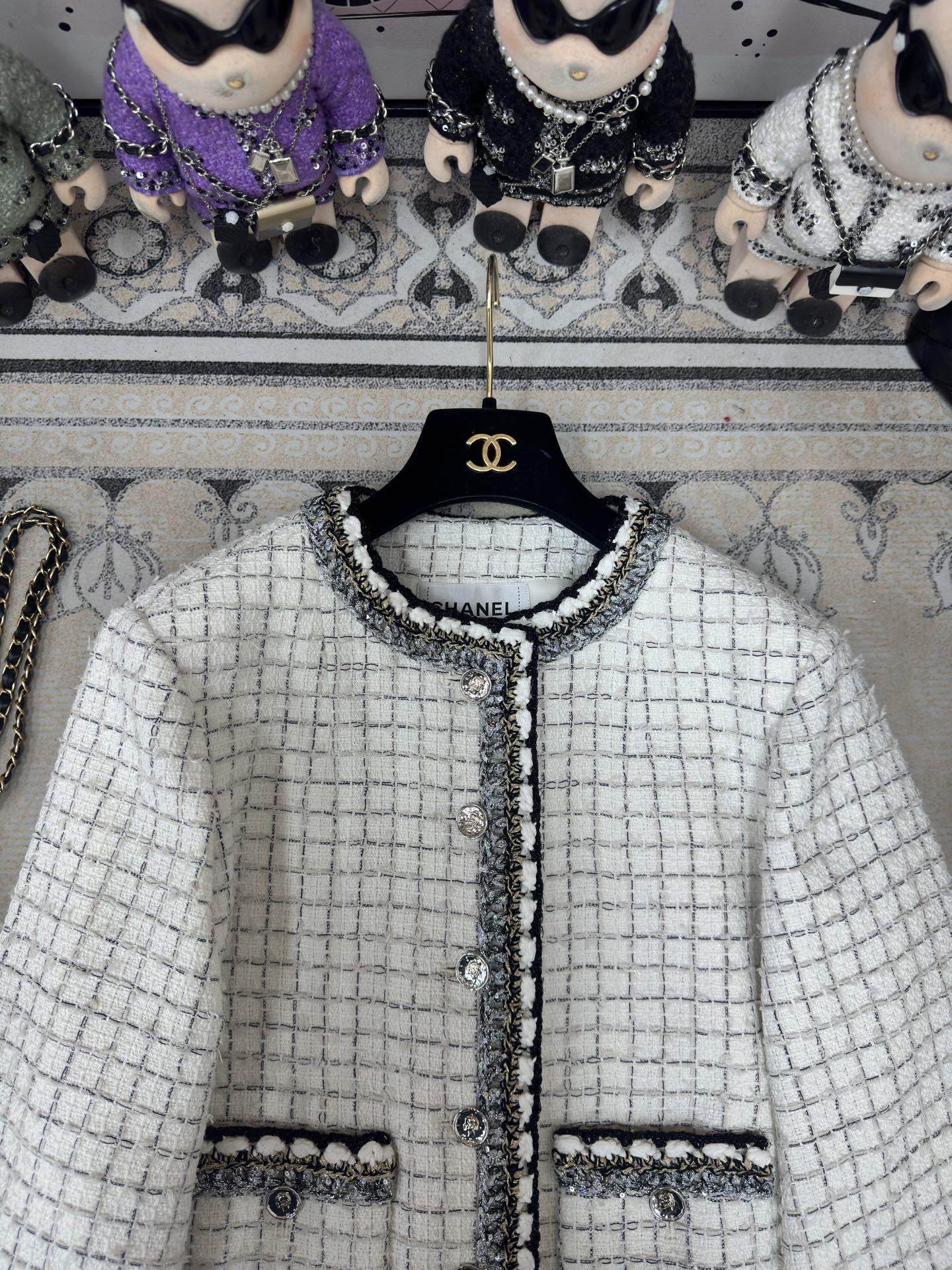 Chanel 2025 White Woven Tweed Fabric Jacket 318544