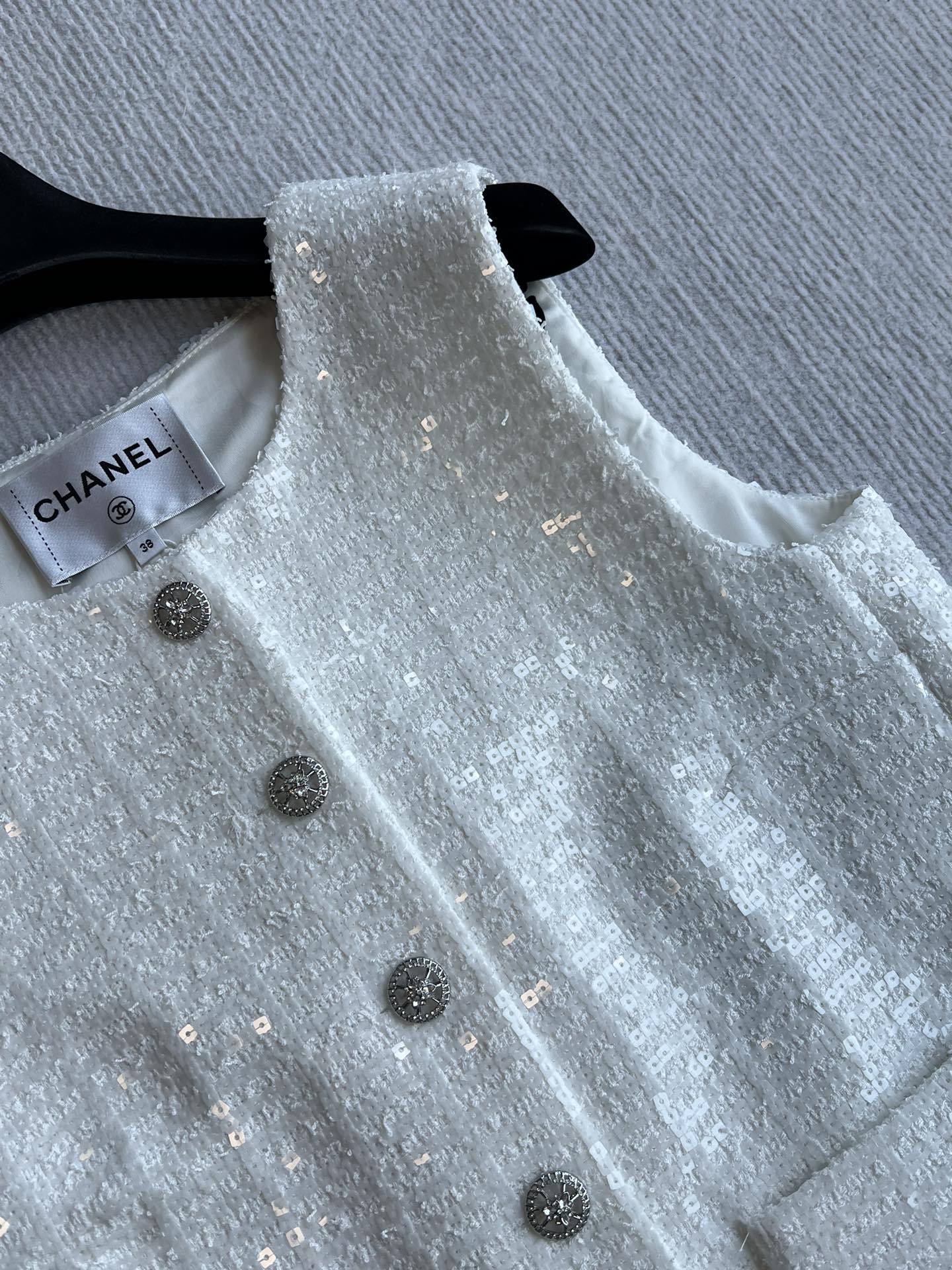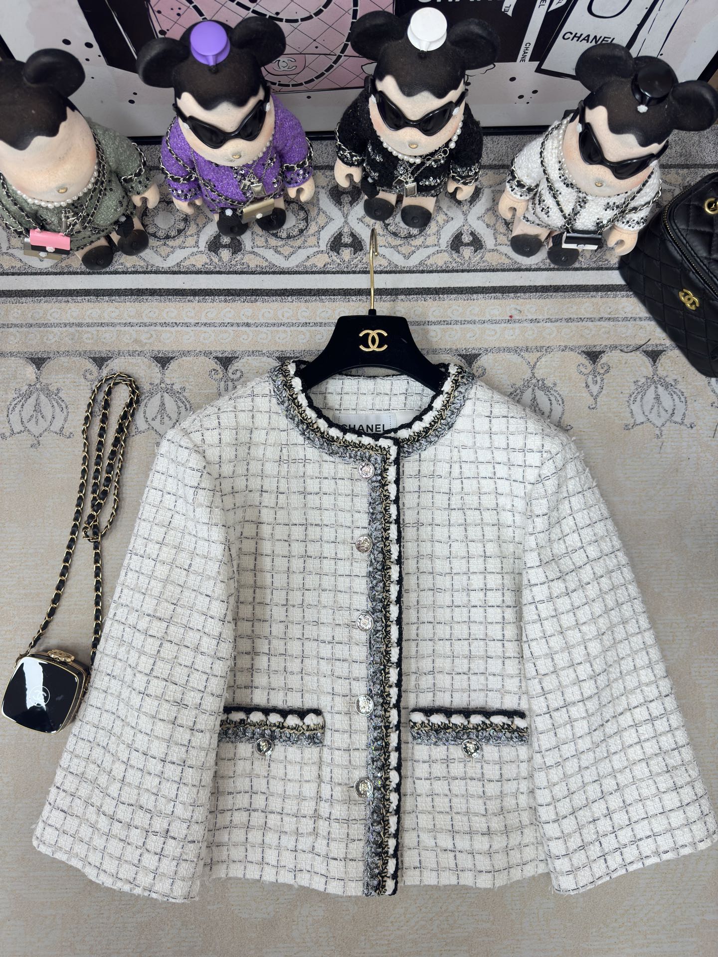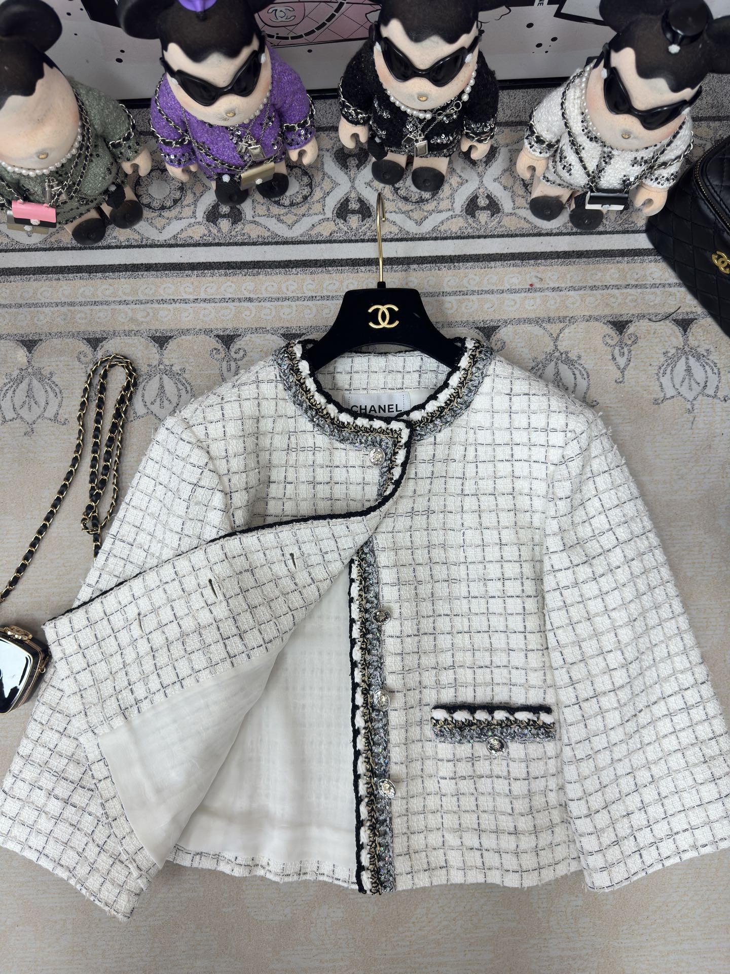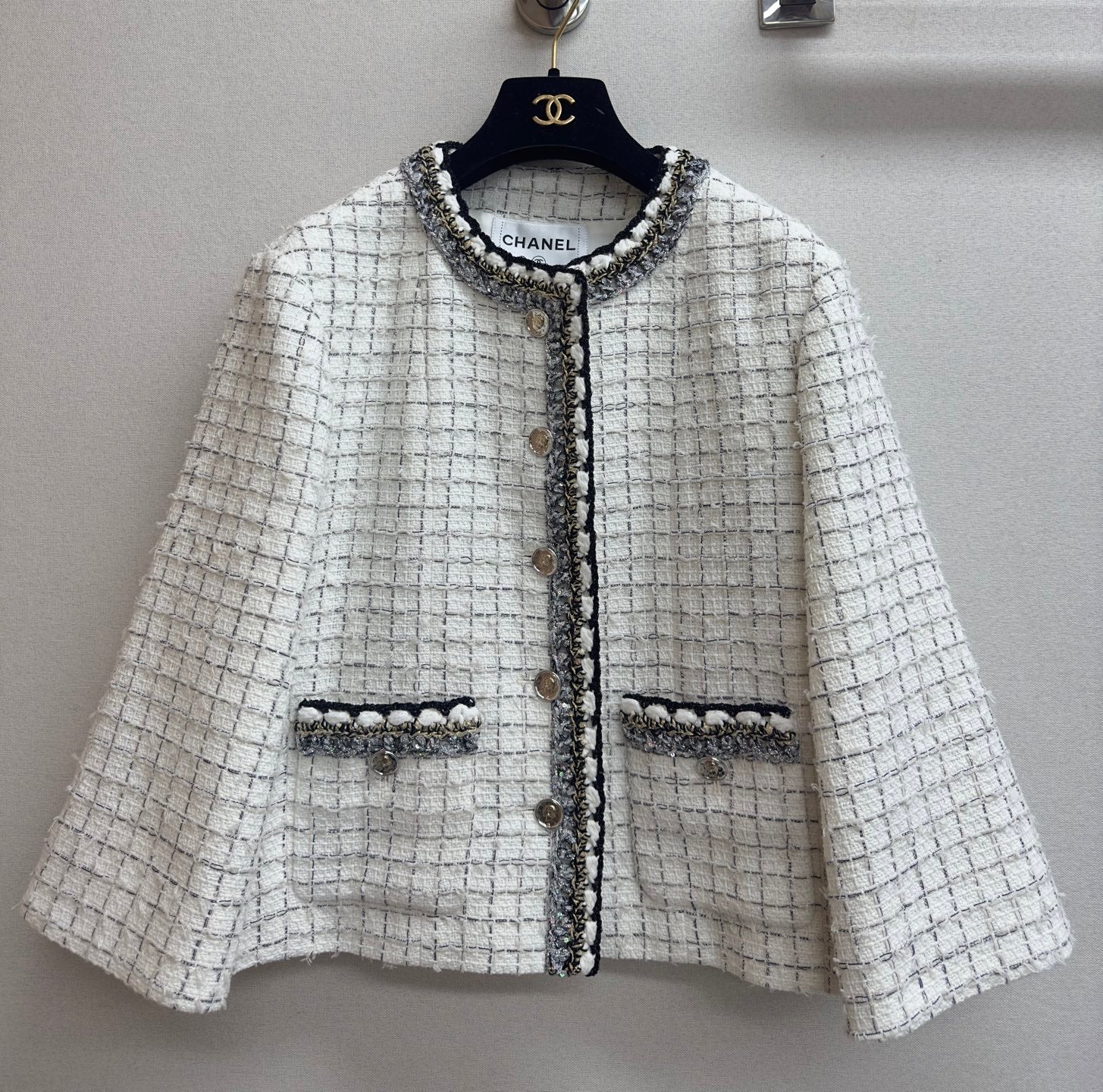 Chanel 2025 White Woven Tweed Fabric Jacket 318544