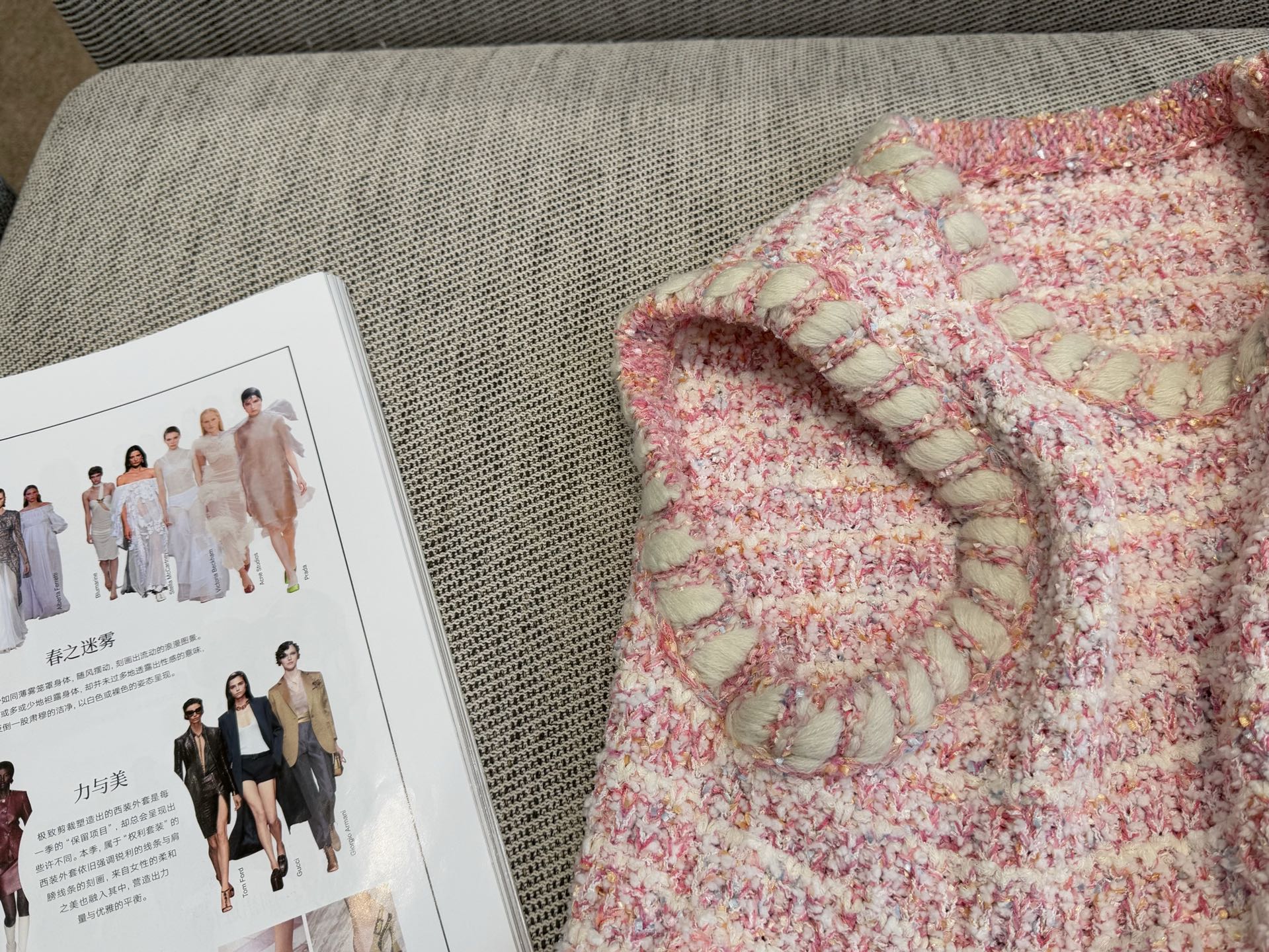 CC Tweed Beaded Coat Pink White Cotton Acrylic 251307