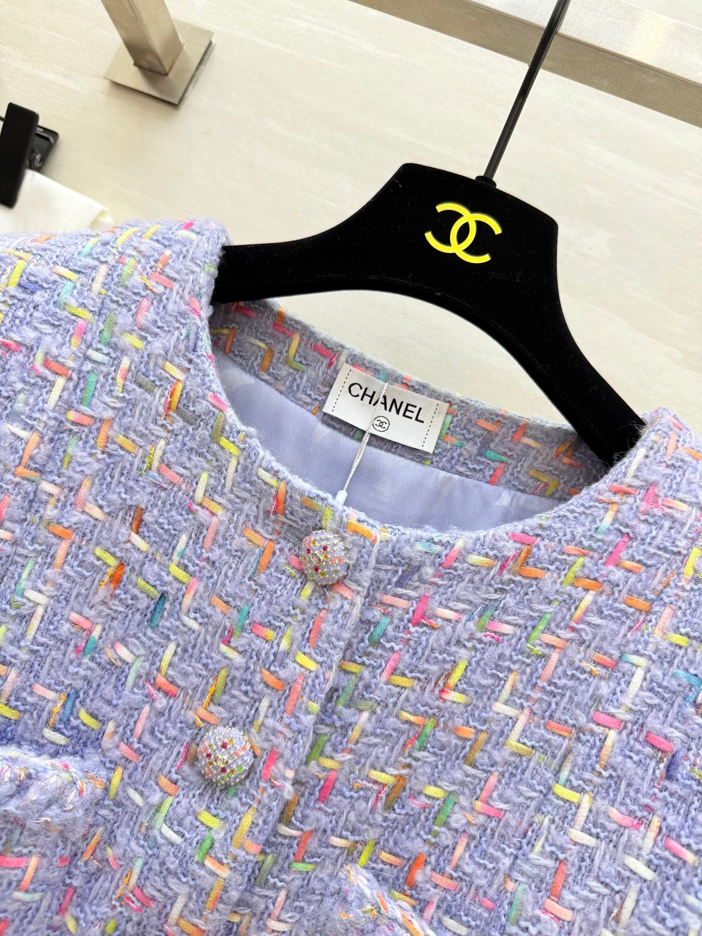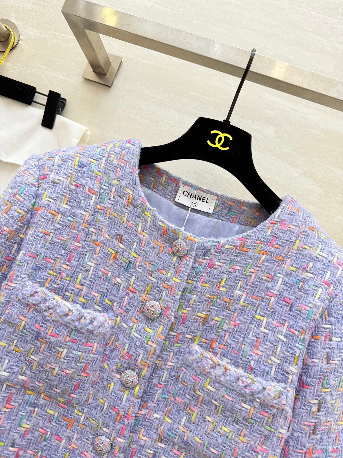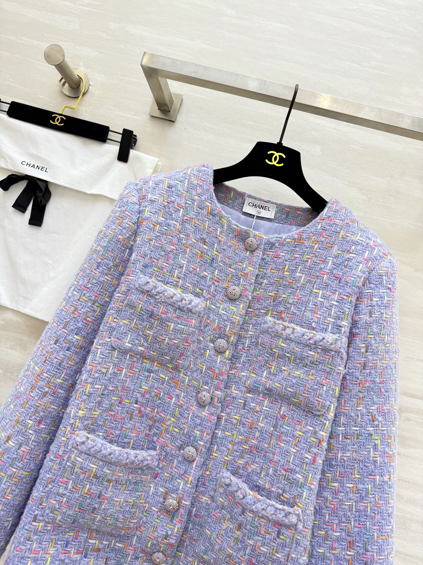 Chanel 2025 Mid-Length Coat Purple Wool Tweed Fabric 319534